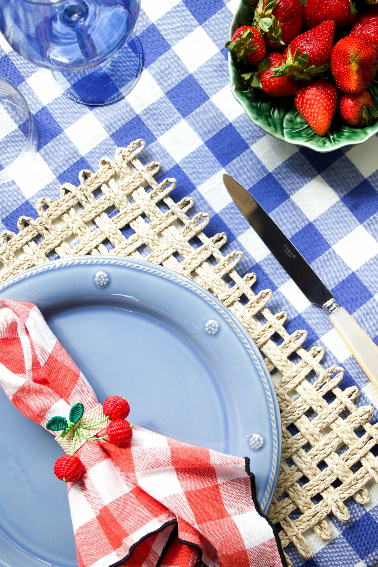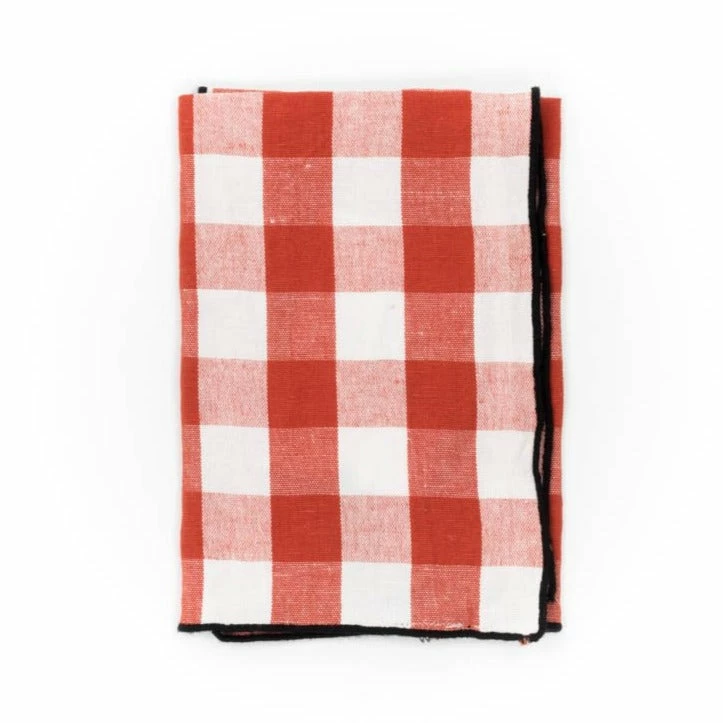 These graphic gingham napkins give you a chance to incorporate color into your tablescape without sacrificing the quality of your linens. The simplistic black edging give them a bold and sophisticated finish.
