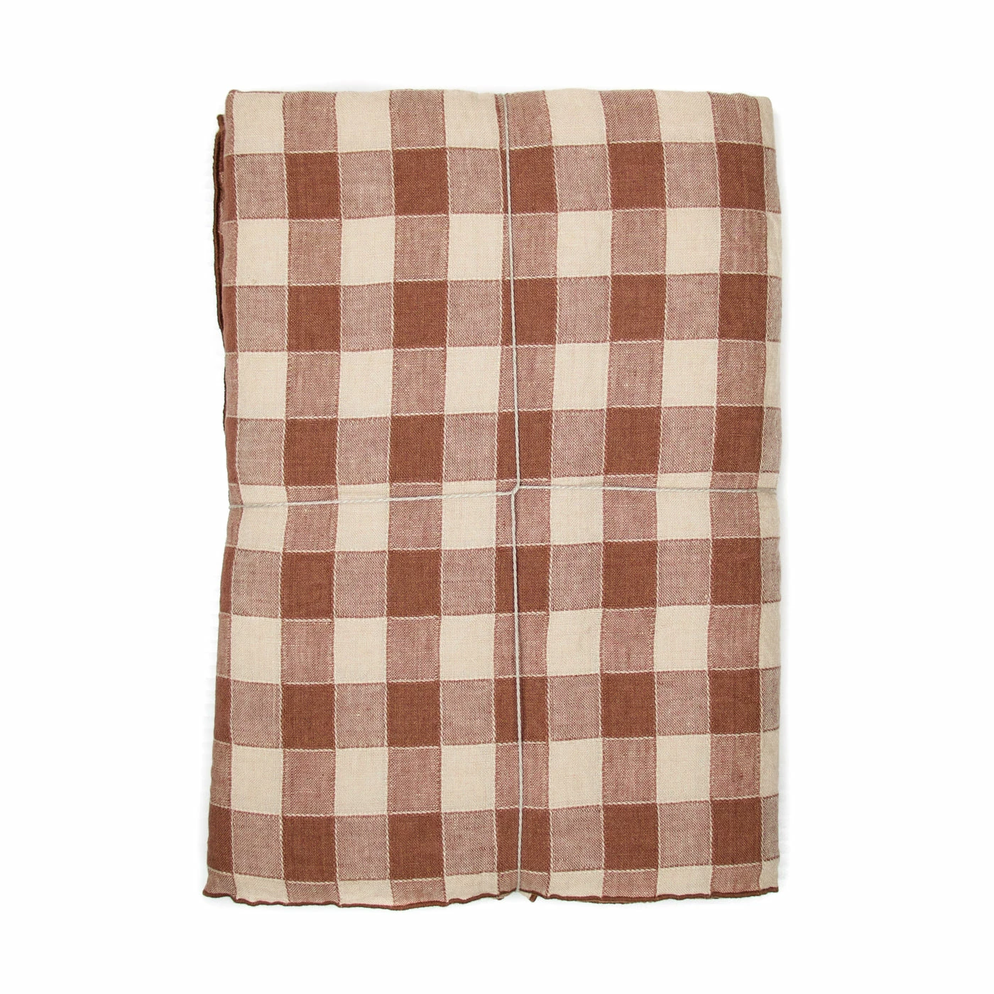 The sophisticated check design is printed into this rust colored tablecloth to reflect Maison de Vacances penchant for vintage references. It’s woven in France from a cotton linen weave and simply stitched along the edges for a clean look.