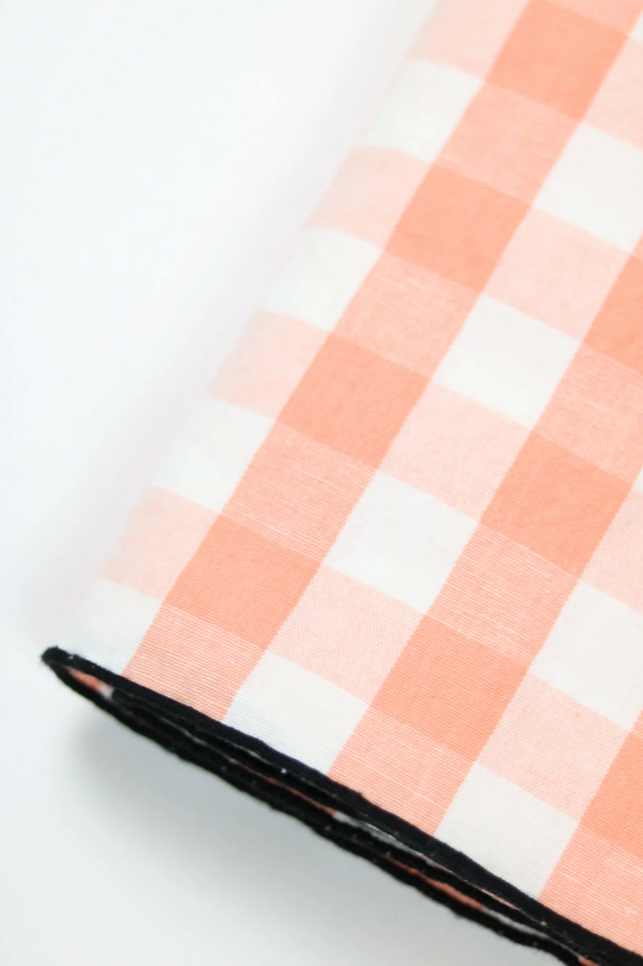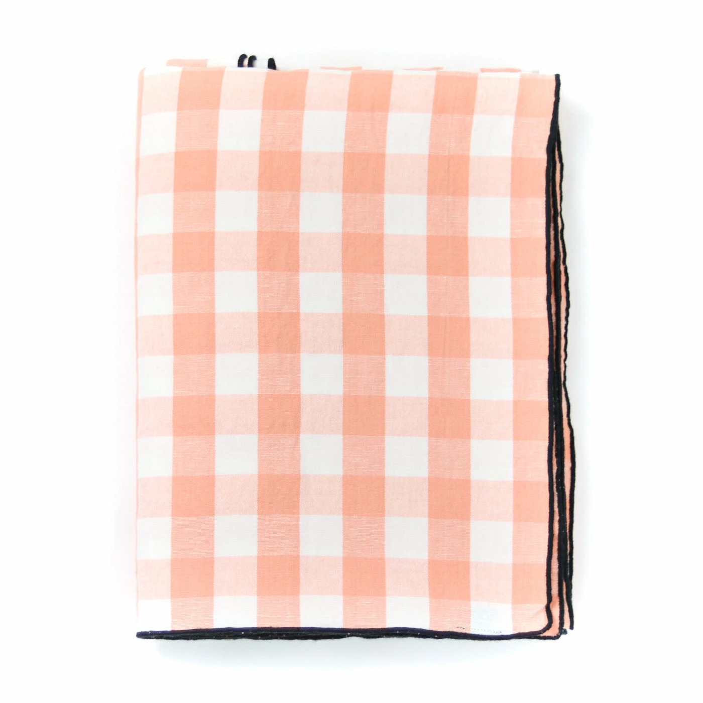 Layers of rich melon in an elegant gingham design is printed into this tablecloth to reflect Maison de Vacances penchant for vintage references. It’s woven in France from a cotton linen weave and simply stitched along the edges for a clean look. Partner it with our tulip tableware to host an intimate dinner at home and elevate it with burgundy stems and lots of Burgundy wine.