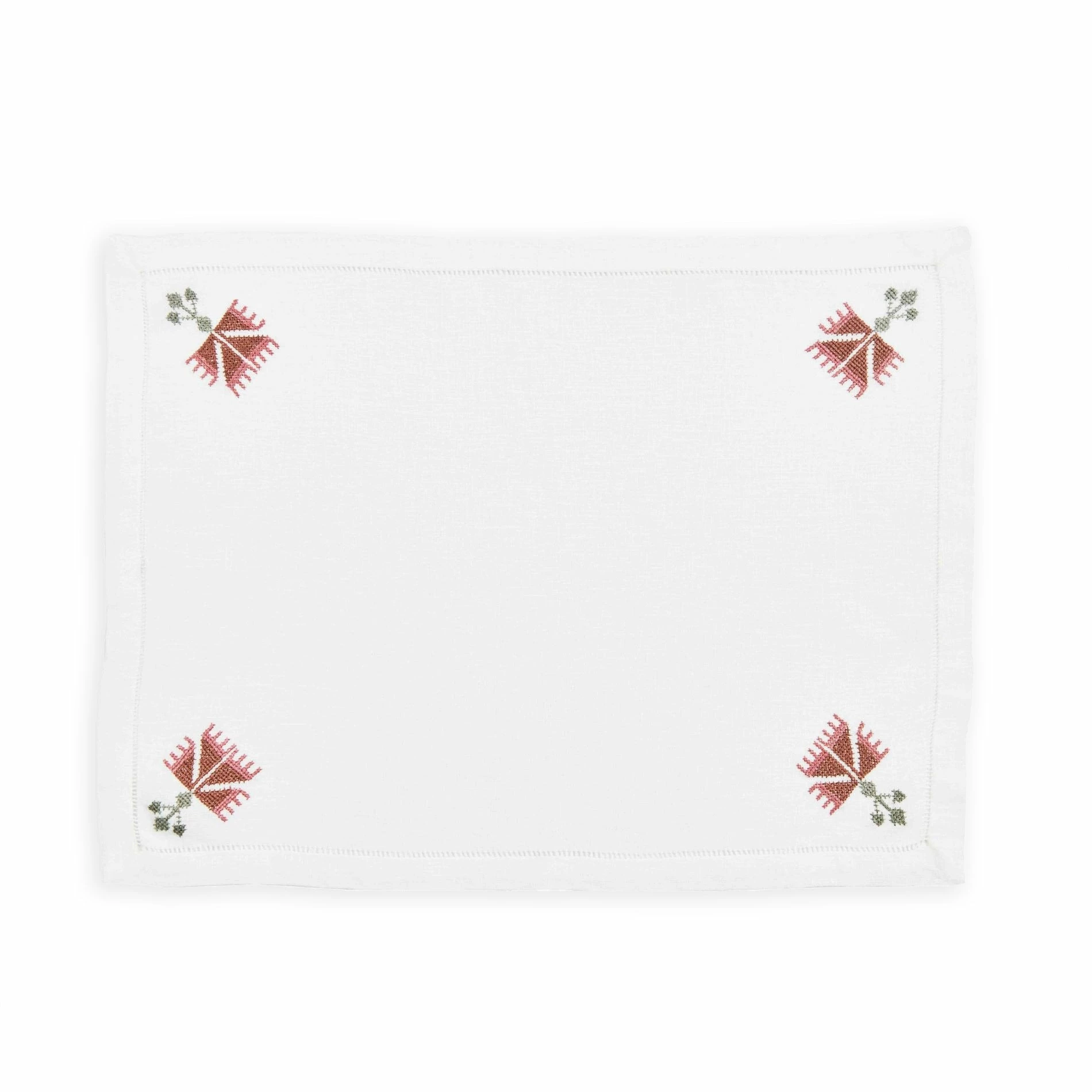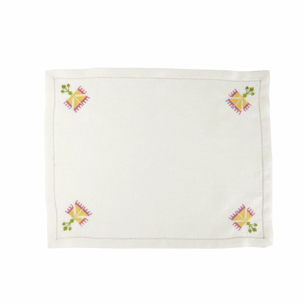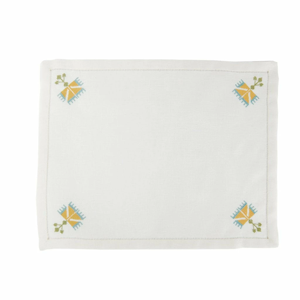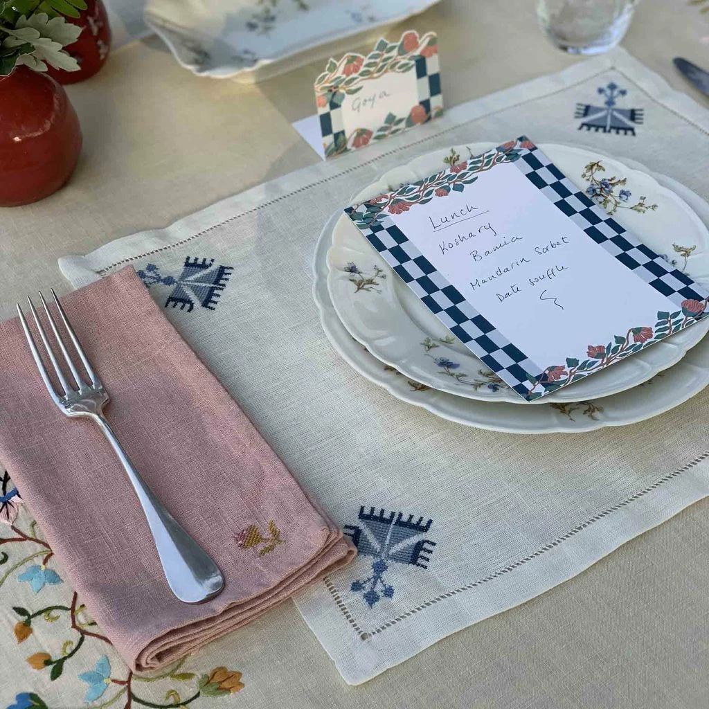 - Each placemat is skillfully hand-embroidered by the brilliant women at the Malaika Embroidery Training Centre in Cairo.