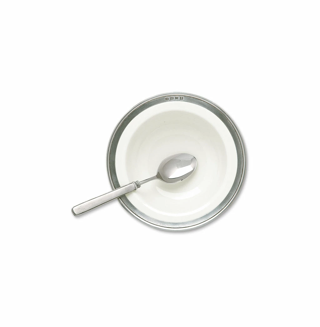 The Convivio dinnerware collection was designed to highlight, but not upstage, your culinary creations, and yes, that includes your favorite cereal. Our founder/creative director purposely designed this bowl to be a bit larger, with ample room to mix yogurt, fruit, granola and the like, without any of it spilling over onto your table. Each piece is individually made by hand, with a ceramic body and our iconic pewter rim that’s stamped with symbols representing our workshop, our company, the tin content of our alloy and the city in Italy where match is made.