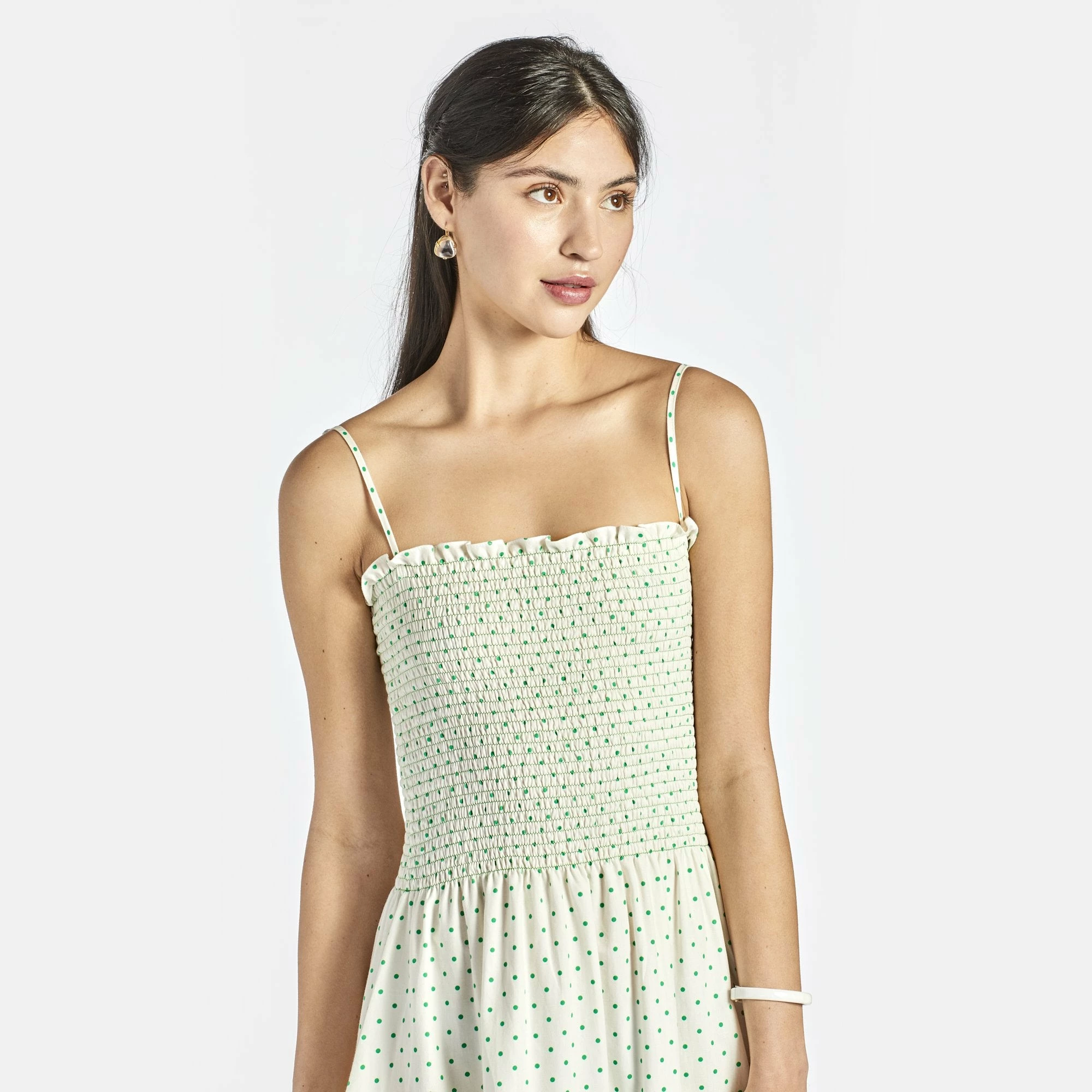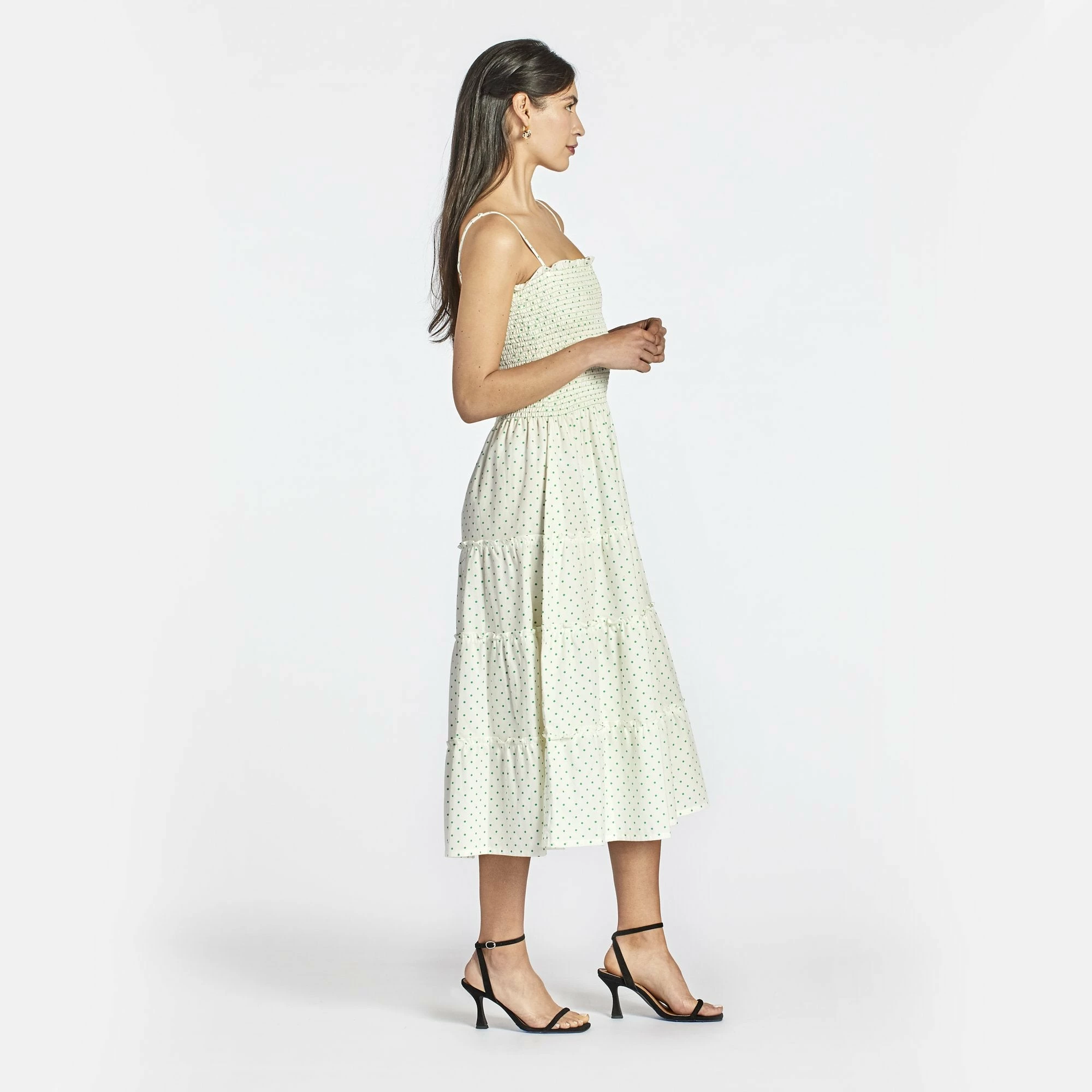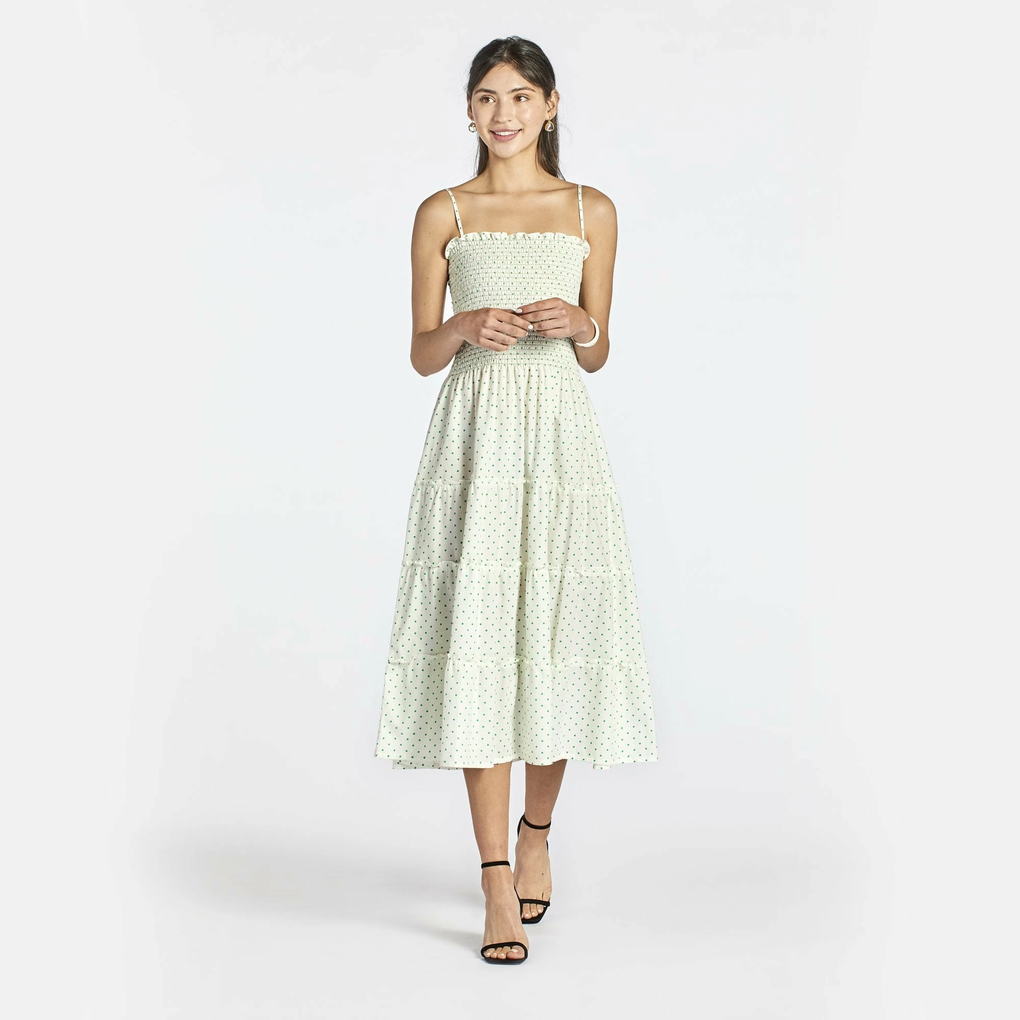 The Beth was designed with Grace Kelly and Audrey Hepburn in mind. It’s a classic style with stretch smocking that hugs and smooths the upper body (no zip required), while the tiered, swingy skirt is ultra-flattering. The adjustable straps make a custom fit a cinch. Your girlfriends will be asking to borrow this one!