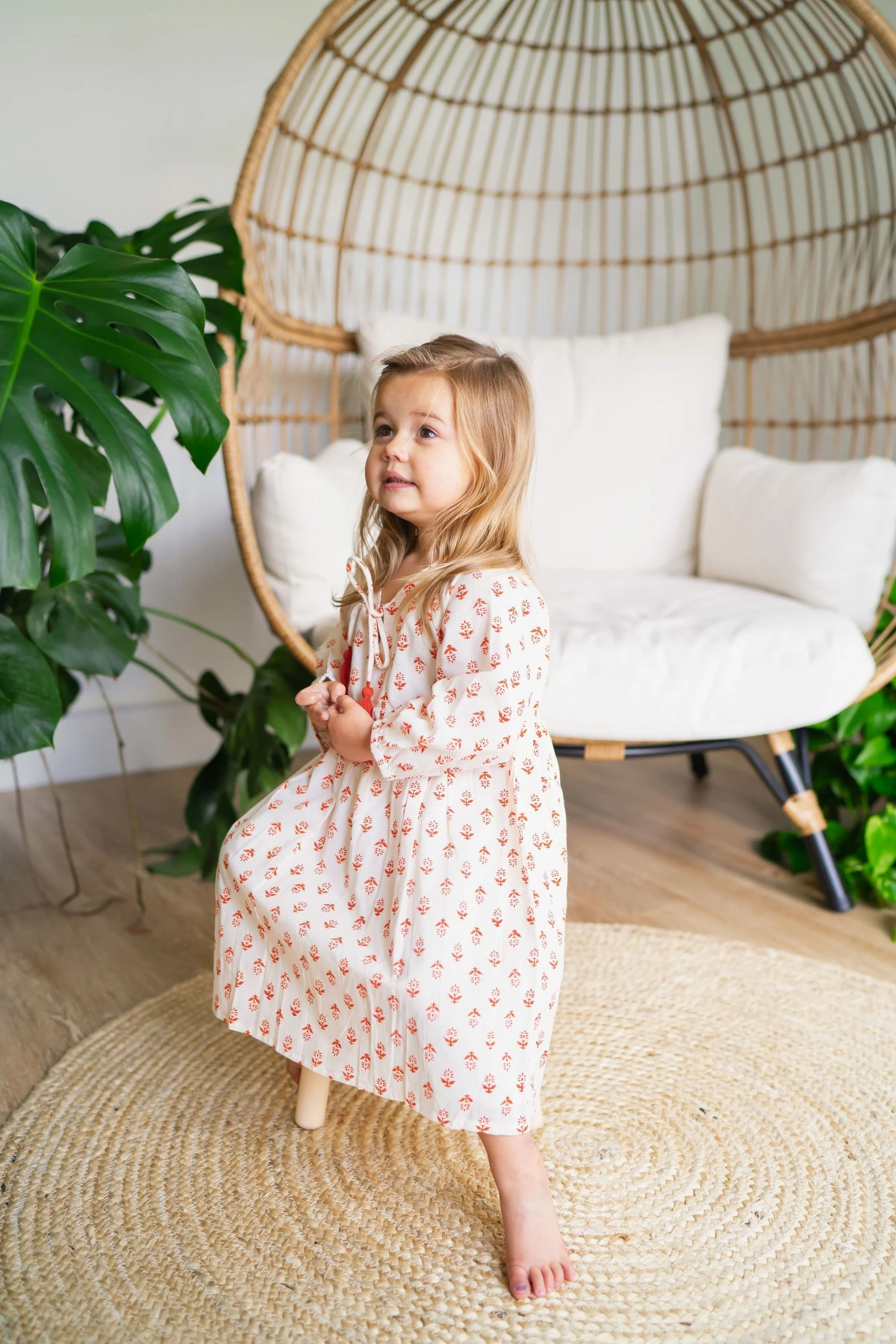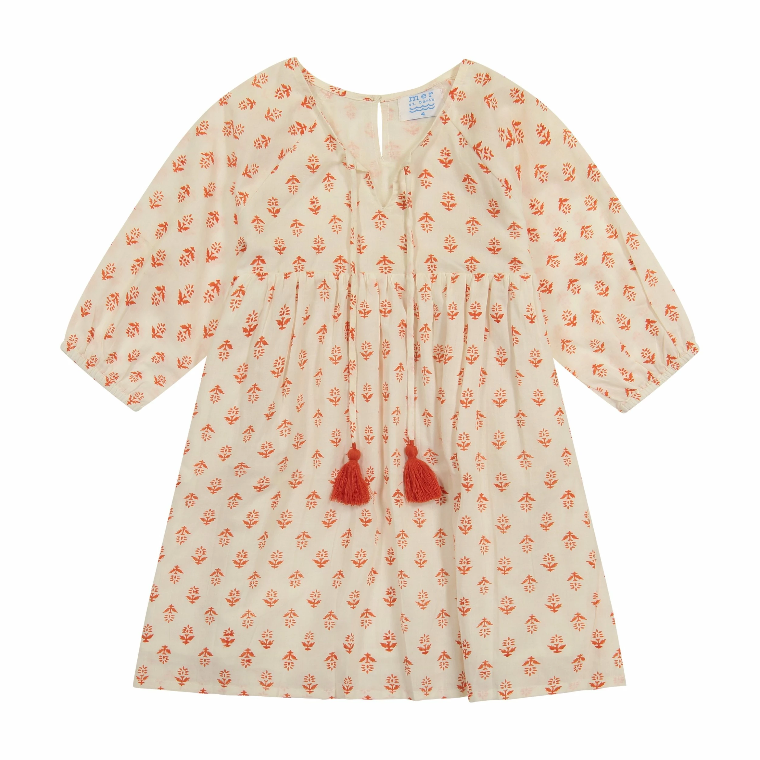 Mer St. Barth Sara Girl’s Tunic Pop Over Dress Coral Block Print
