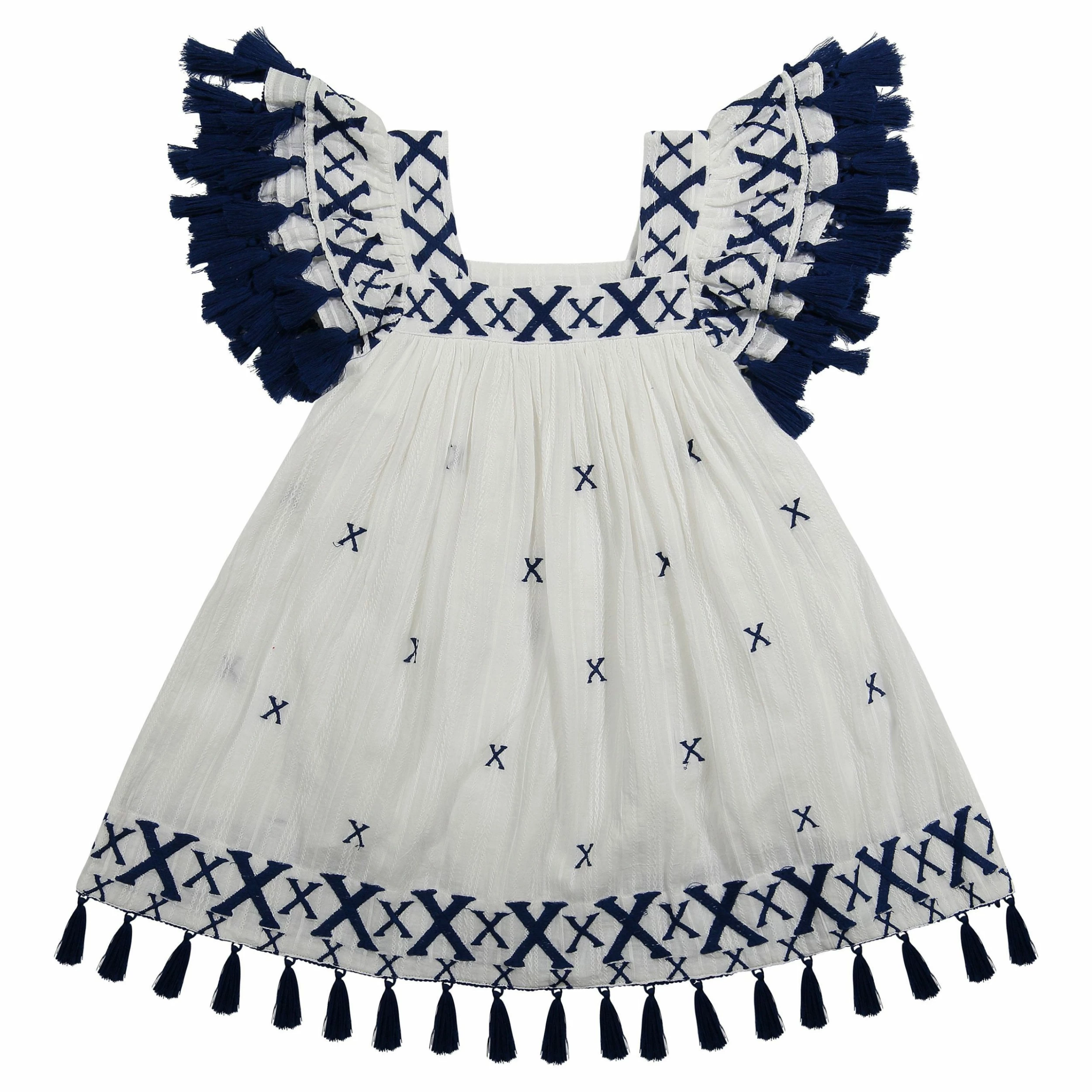 She’ll want to dance under the stars at Toiny Beach in the boho-inspired Serena dress with its double layers of tassels and twirly skirt. Embroidered detailing at neck and hem.