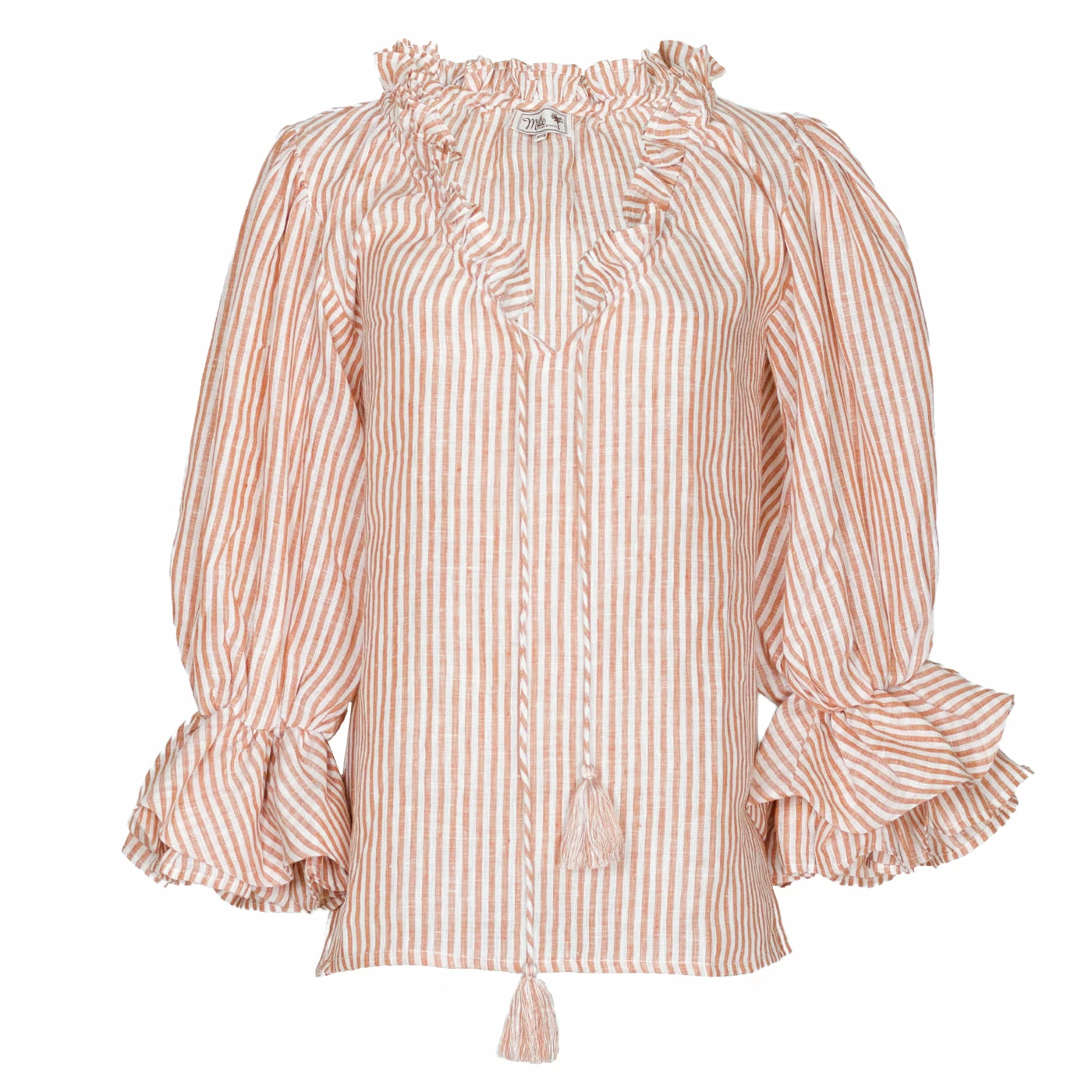 The romantic Rose top has soft gathered sleeves and a scooped drawstring neckline.
