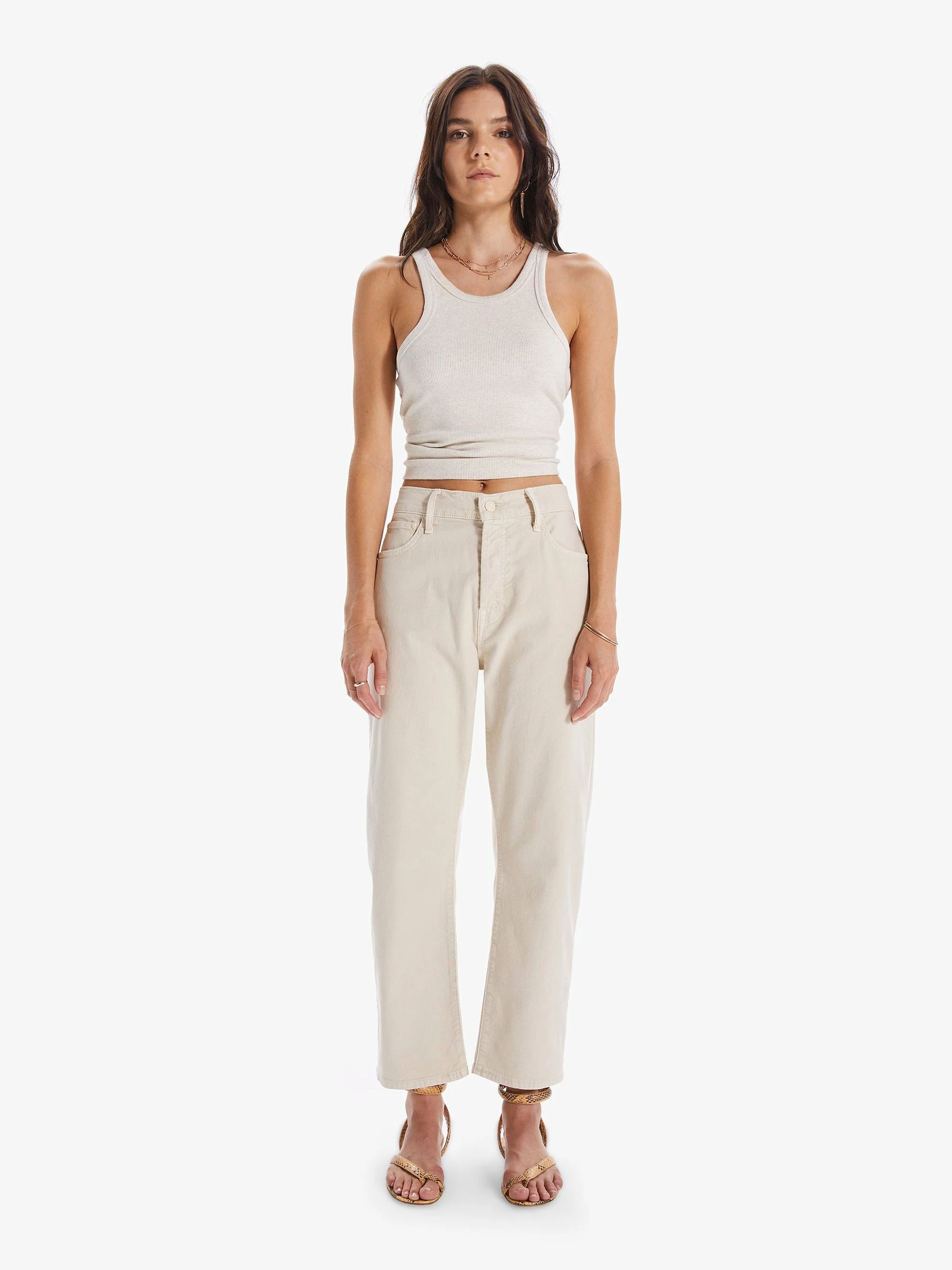 Cropped pants with a button fly, slouchy straight leg and relaxed fit that’s designed to sit on the hips. Crafted from a cotton blend in a clean, off-white hue, the pants feature a touch of stretch and tonal hardware.
