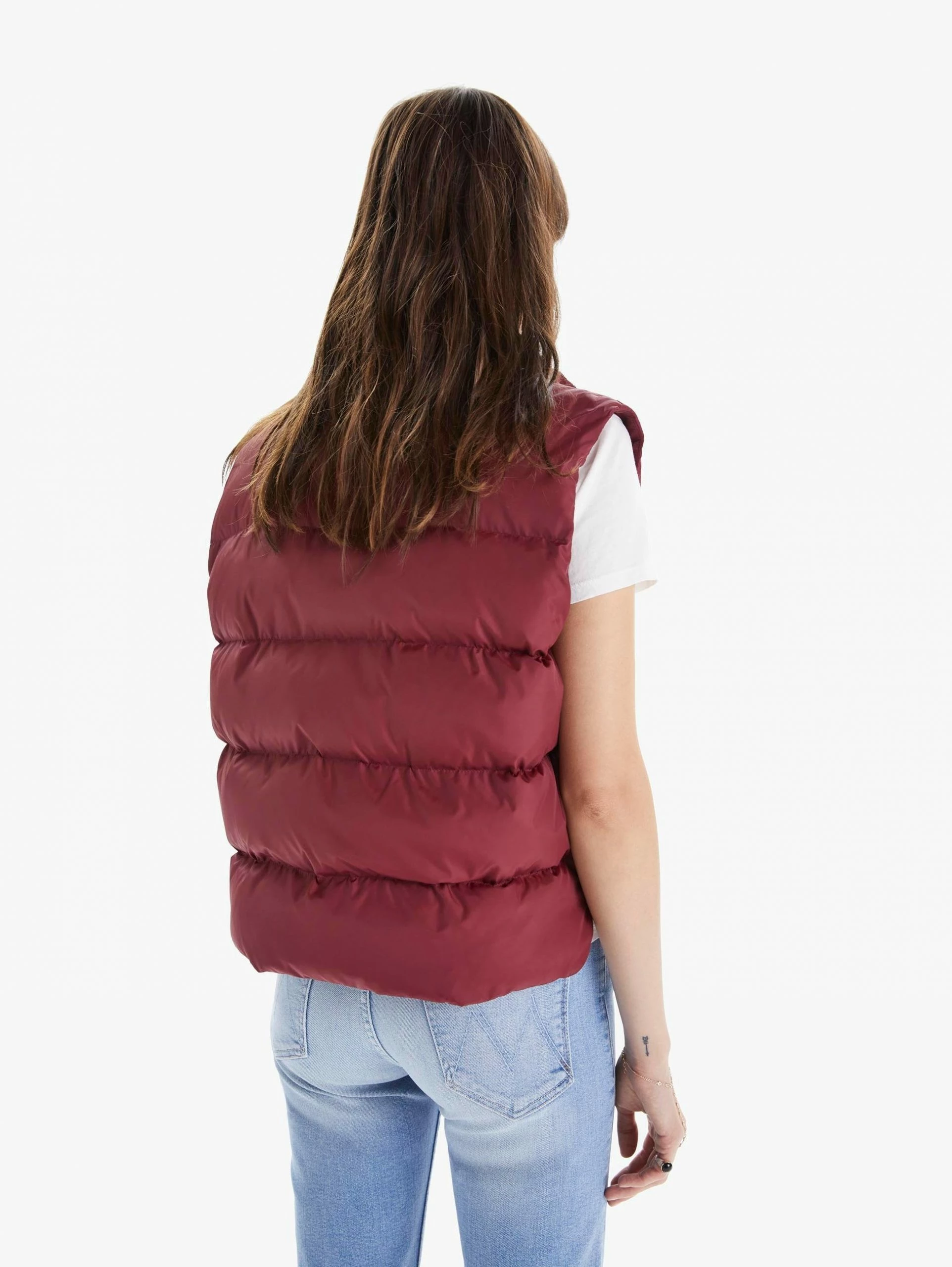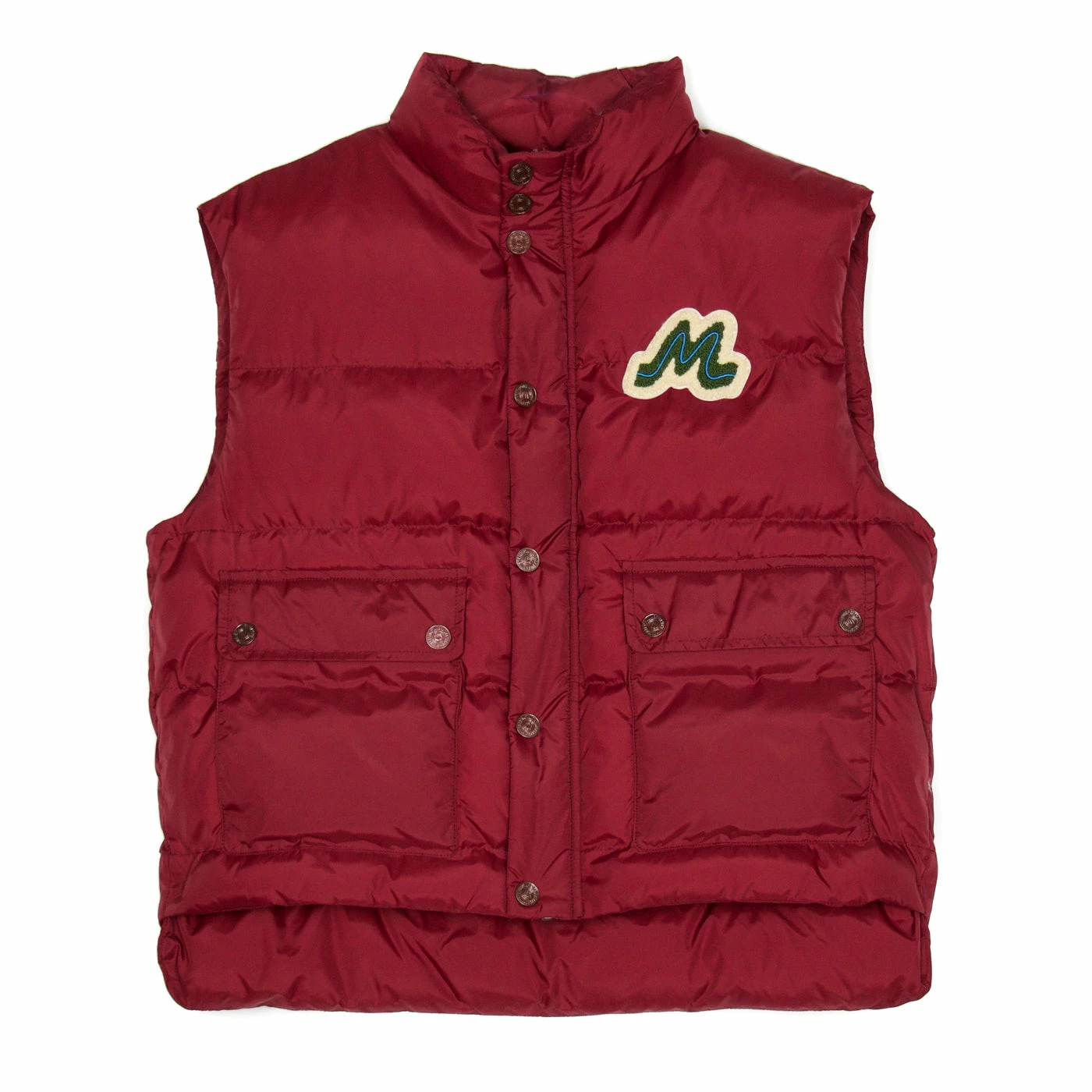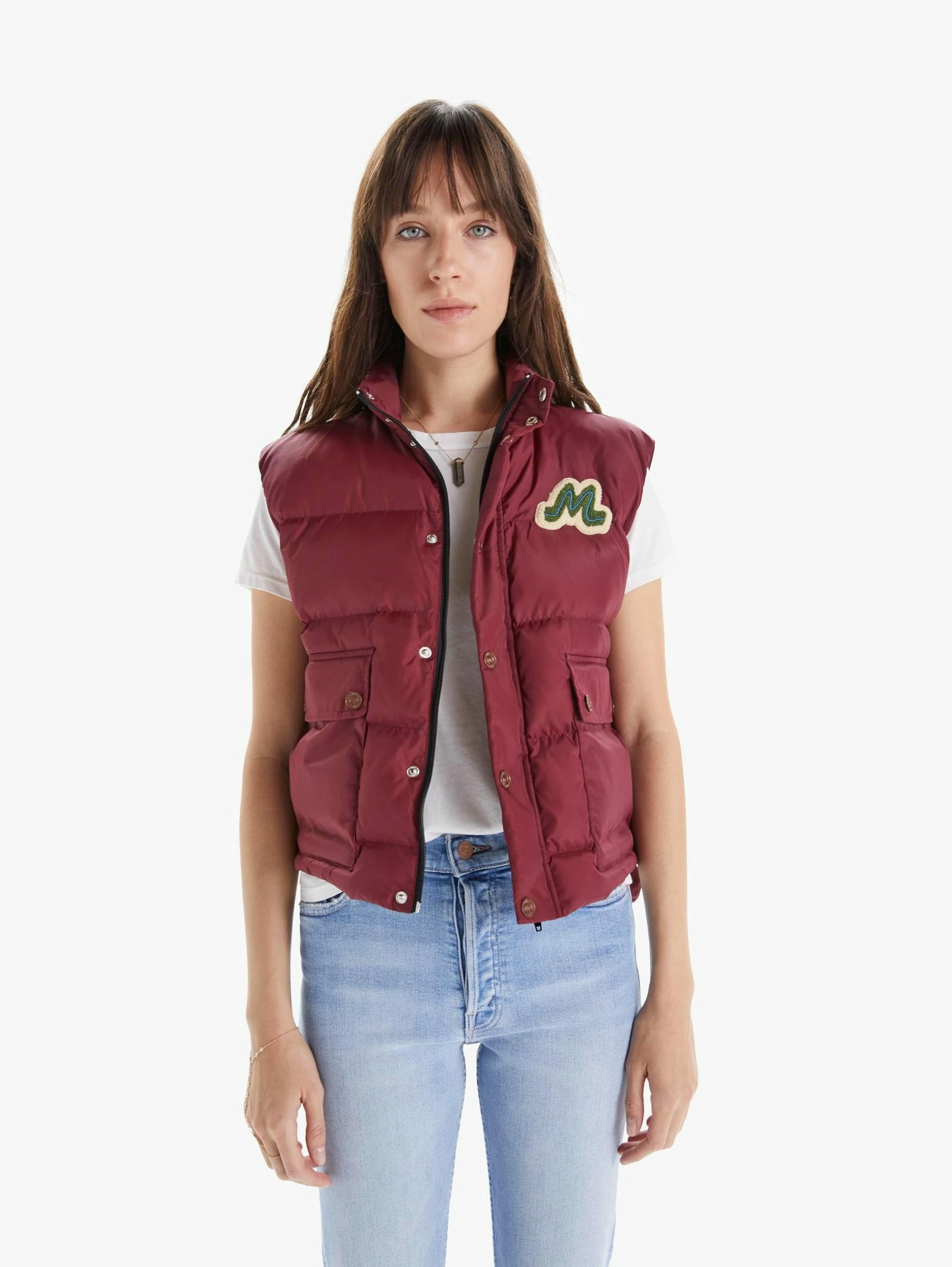 Put some miles on it. This vintage-inspired puffer vest has a straight, comfortable fit that hits at the hips. The deep red exterior features large patch pockets and a chenille patch on the chest.