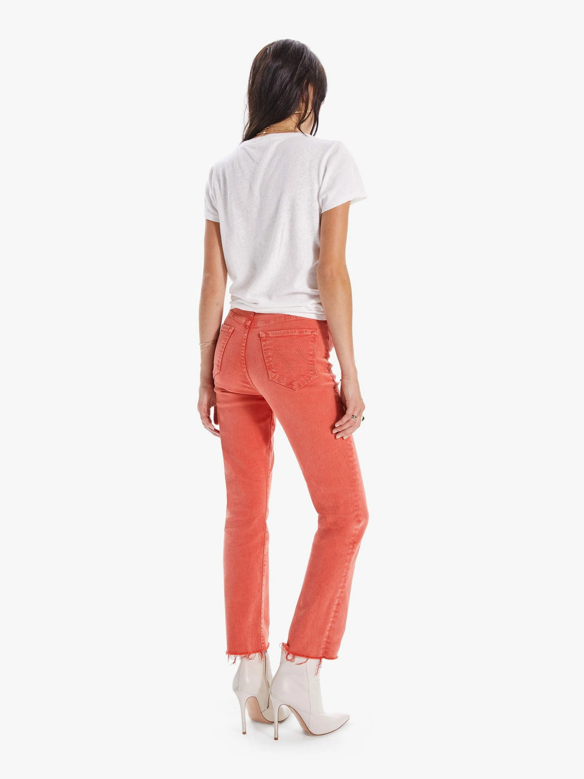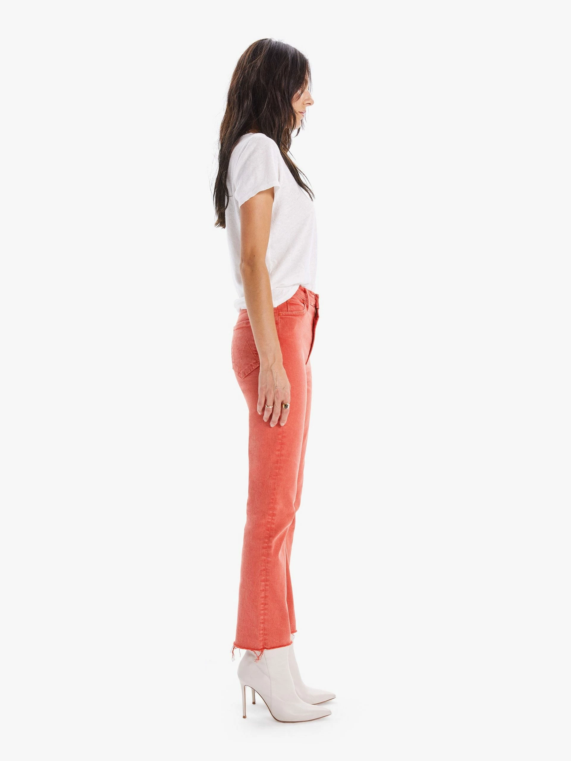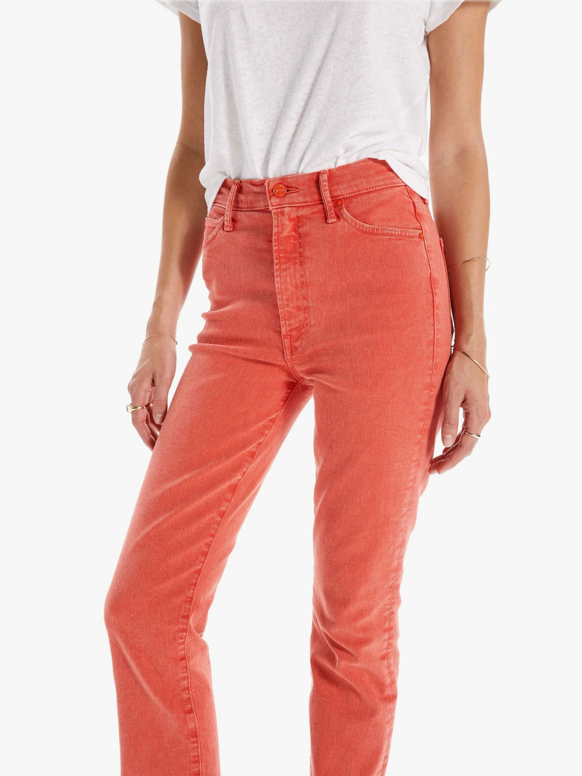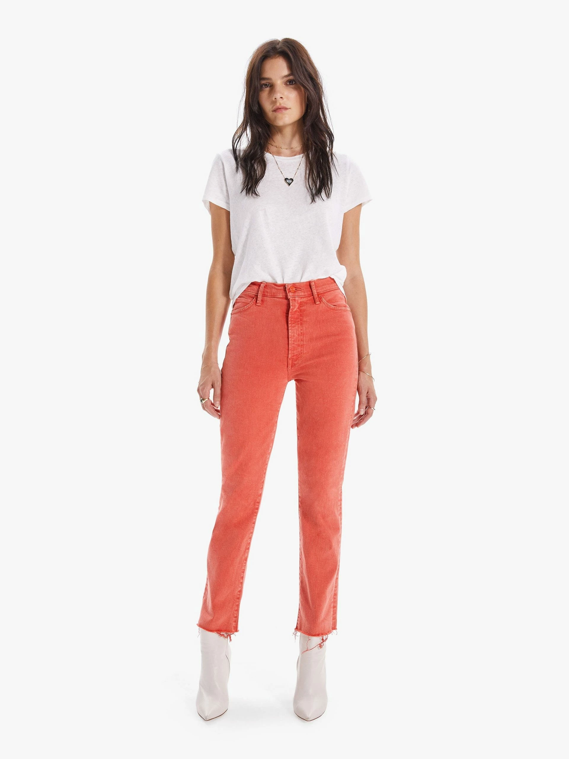 Play another one. A high-rise skinny with an ankle-length inseam and a frayed hem. With a touch of stretch, these mineral-washed pants in a red hue are ready for a night on the town.