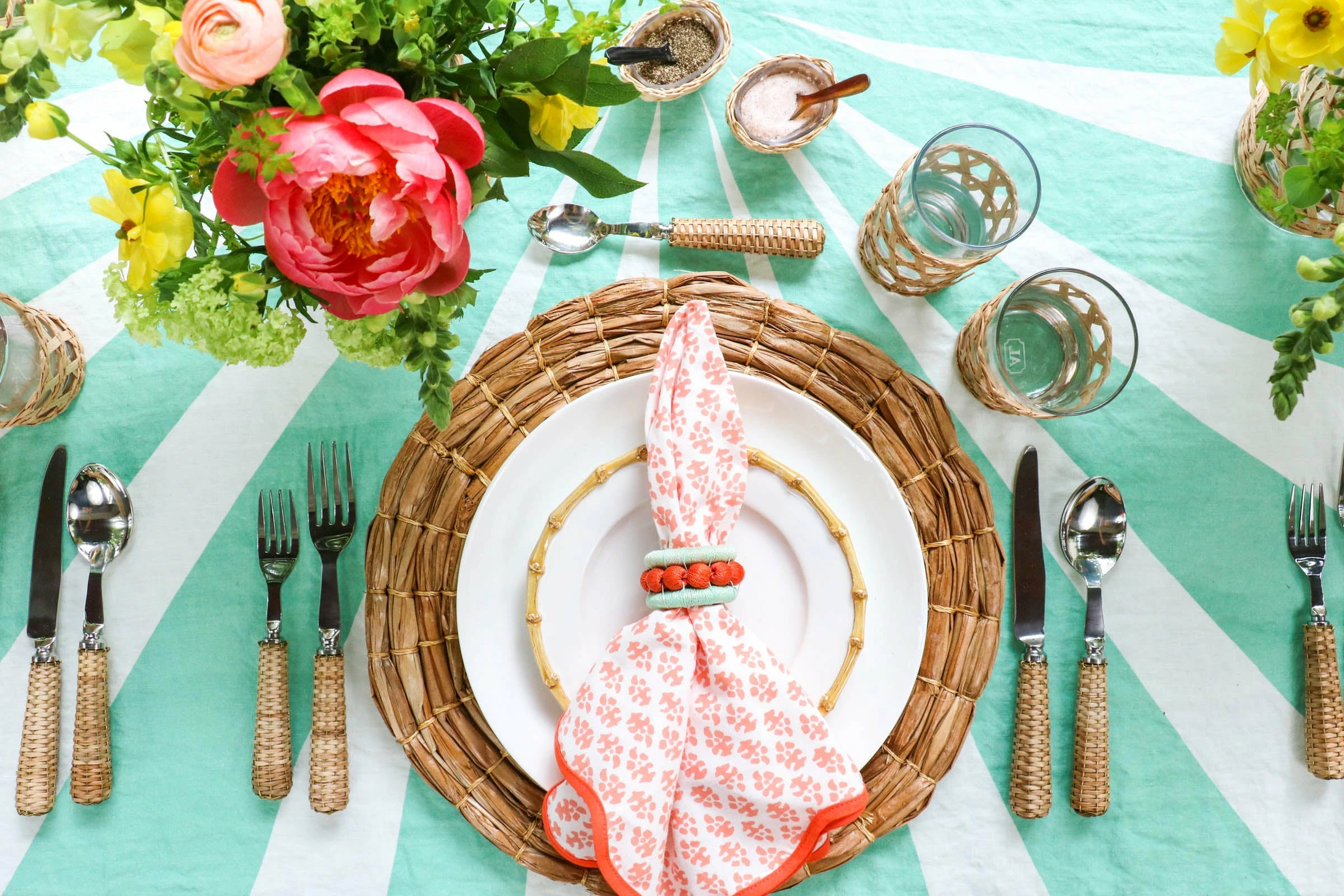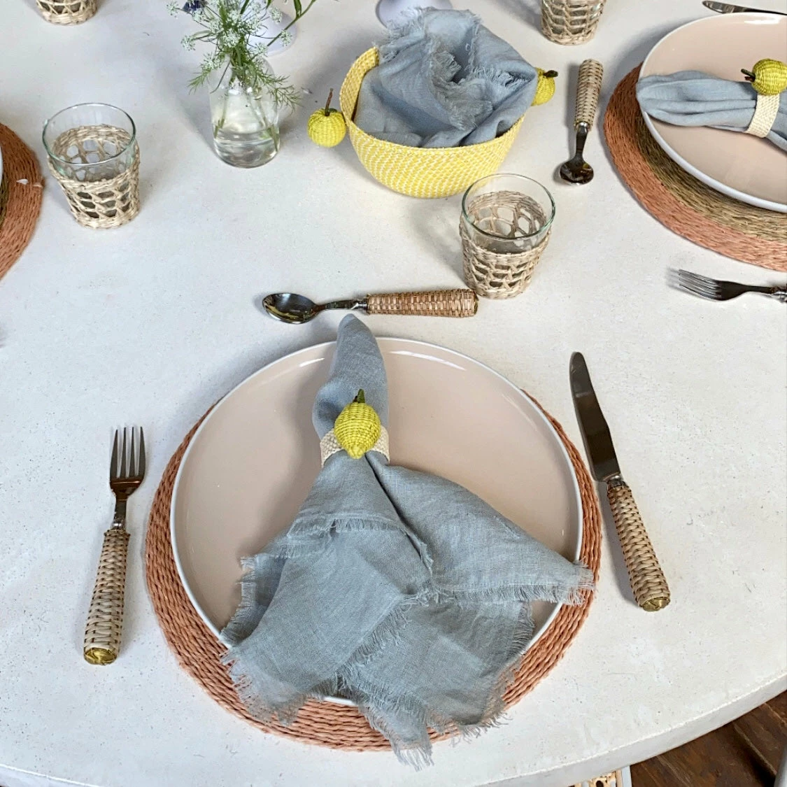 Flatware acts as the jewelry of your place setting: it thoughtfully fits into the surrounding tablescape while adding something extra. This basketweave style does just that with its textured rattan handle. This five-piece set screams summer in the best way, and the natural color makes it a match for whatever else your hostess heart desires.