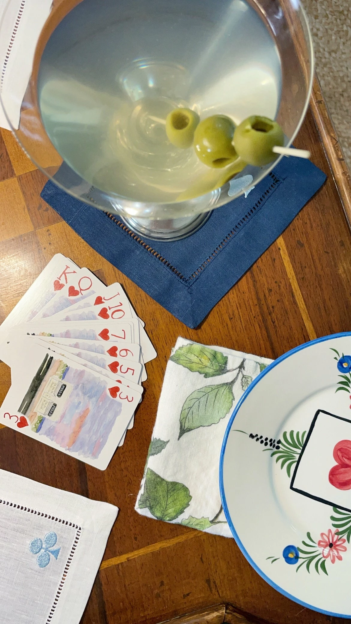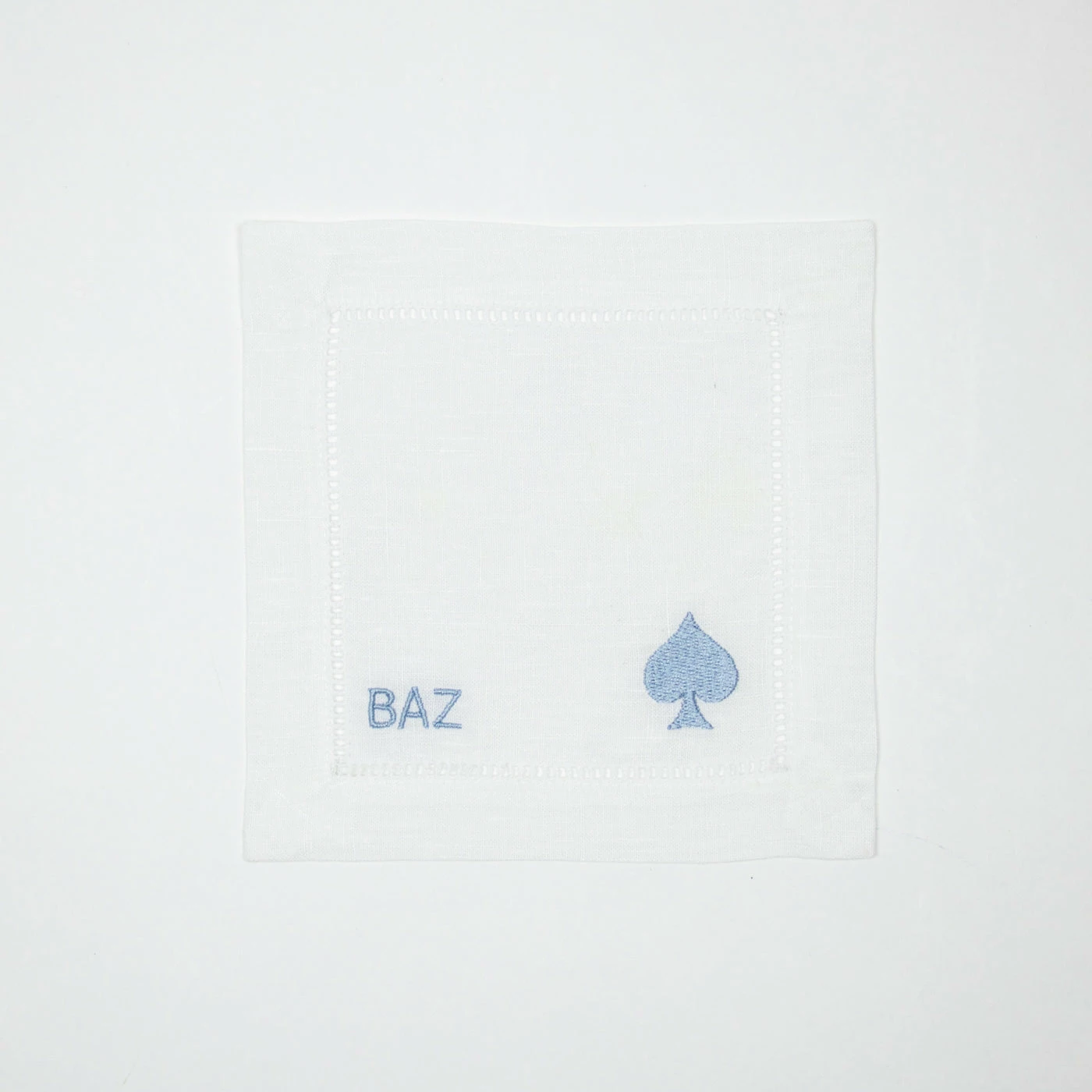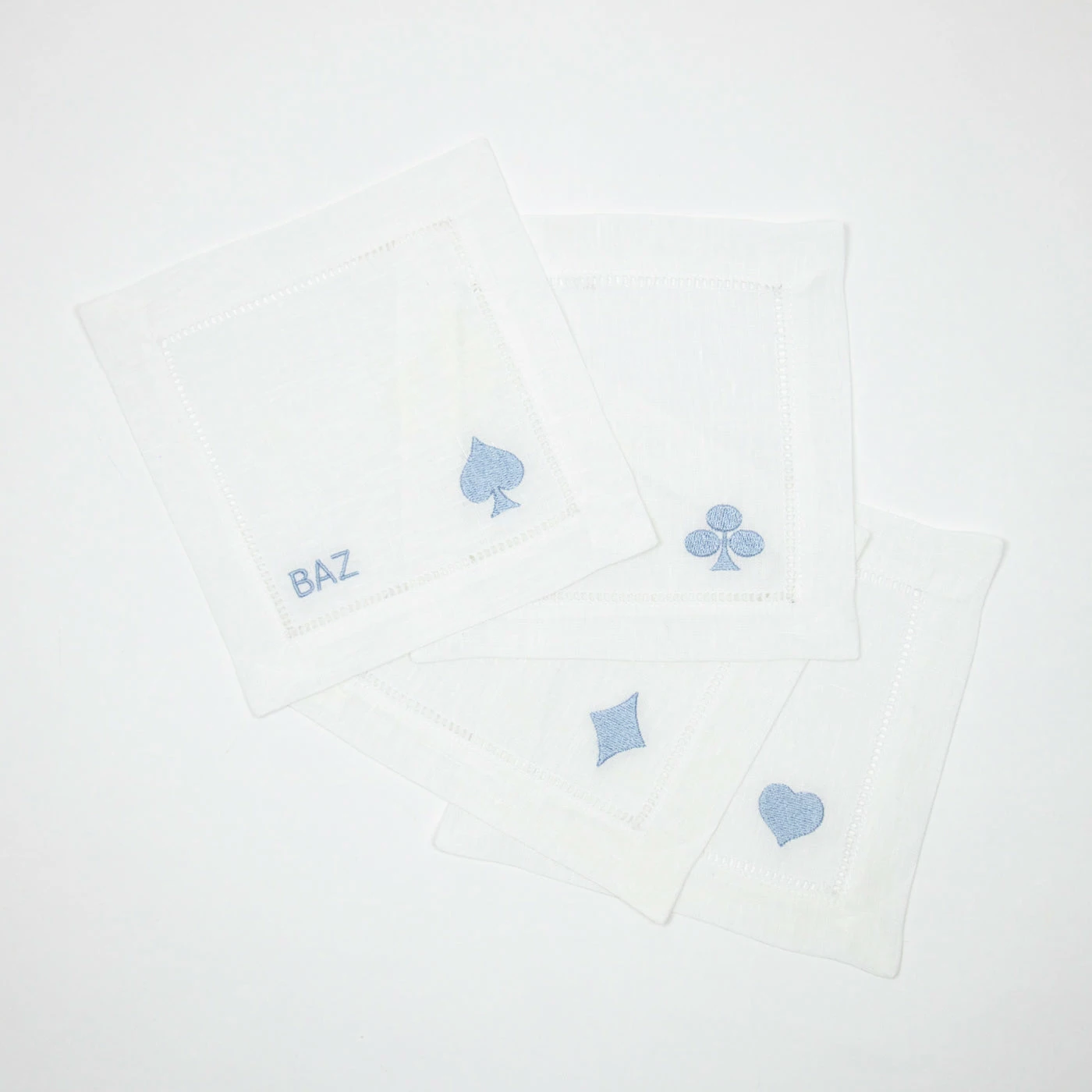 Provide the ideal ambiance for your next game night with these cocktail napkins. Choose your favorite suit and add your initial to make it bespoke. The perfect gift for the hostess in your life.