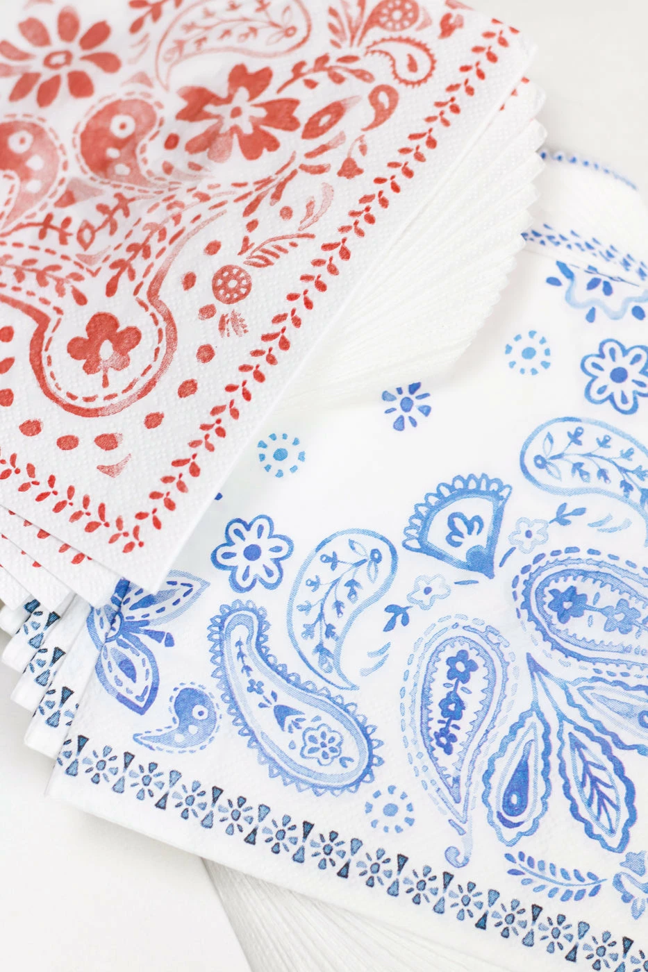 As the sun starts to warm our weekends, it’s time to stow away precious linens in favor of the paper kind. Cue these Americana napkin sets that suit this season’s on-trend paisley print. Pile them high during grill-outs, cocktail hour and after-camp snacks.