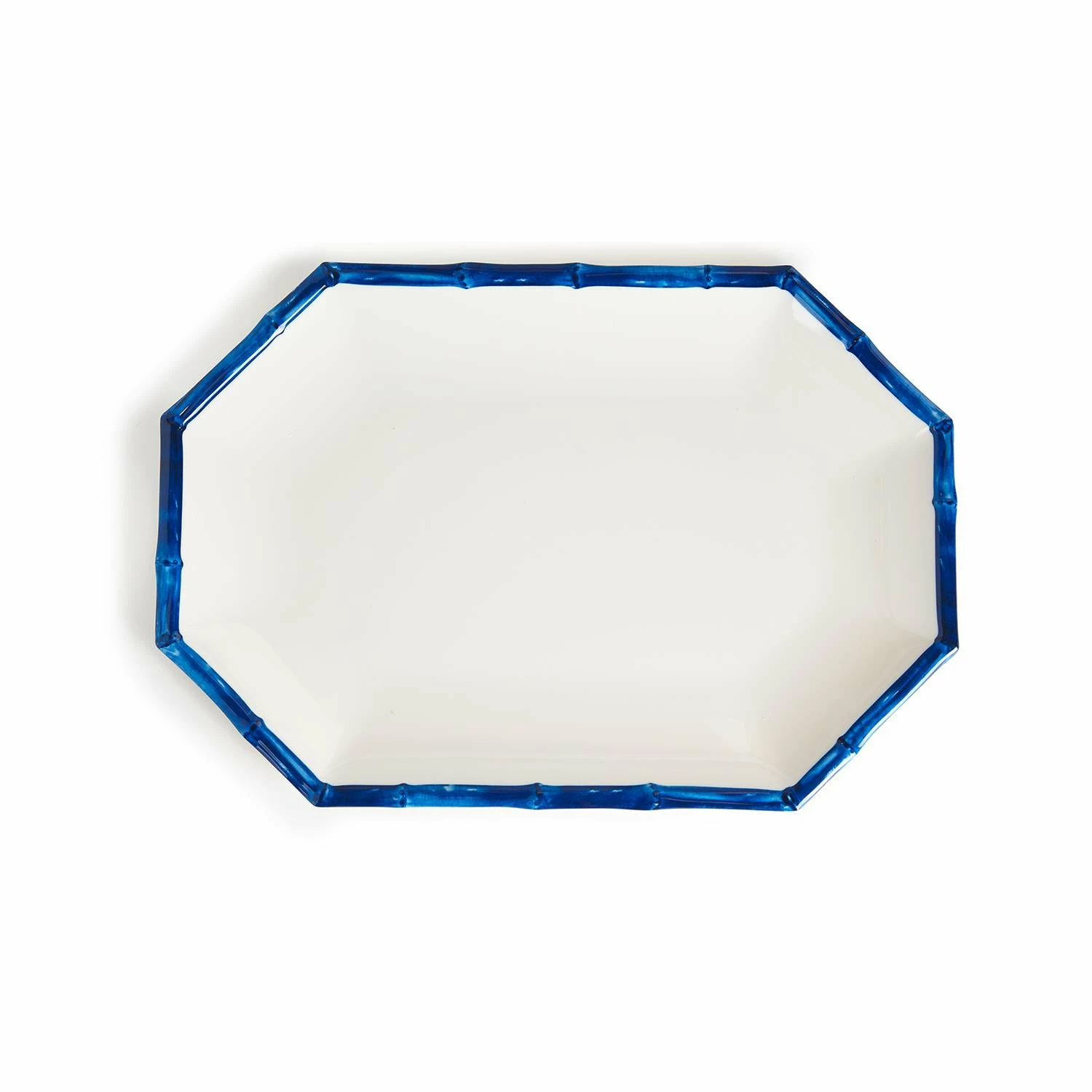 Melamine never looked so good. Say hello to the newest addition to our melamine collection, the Octagonal Bamboo Touch Serving Platter. An absolute vision with a bold blue rim that easily transports for serving to your guests on the patio.