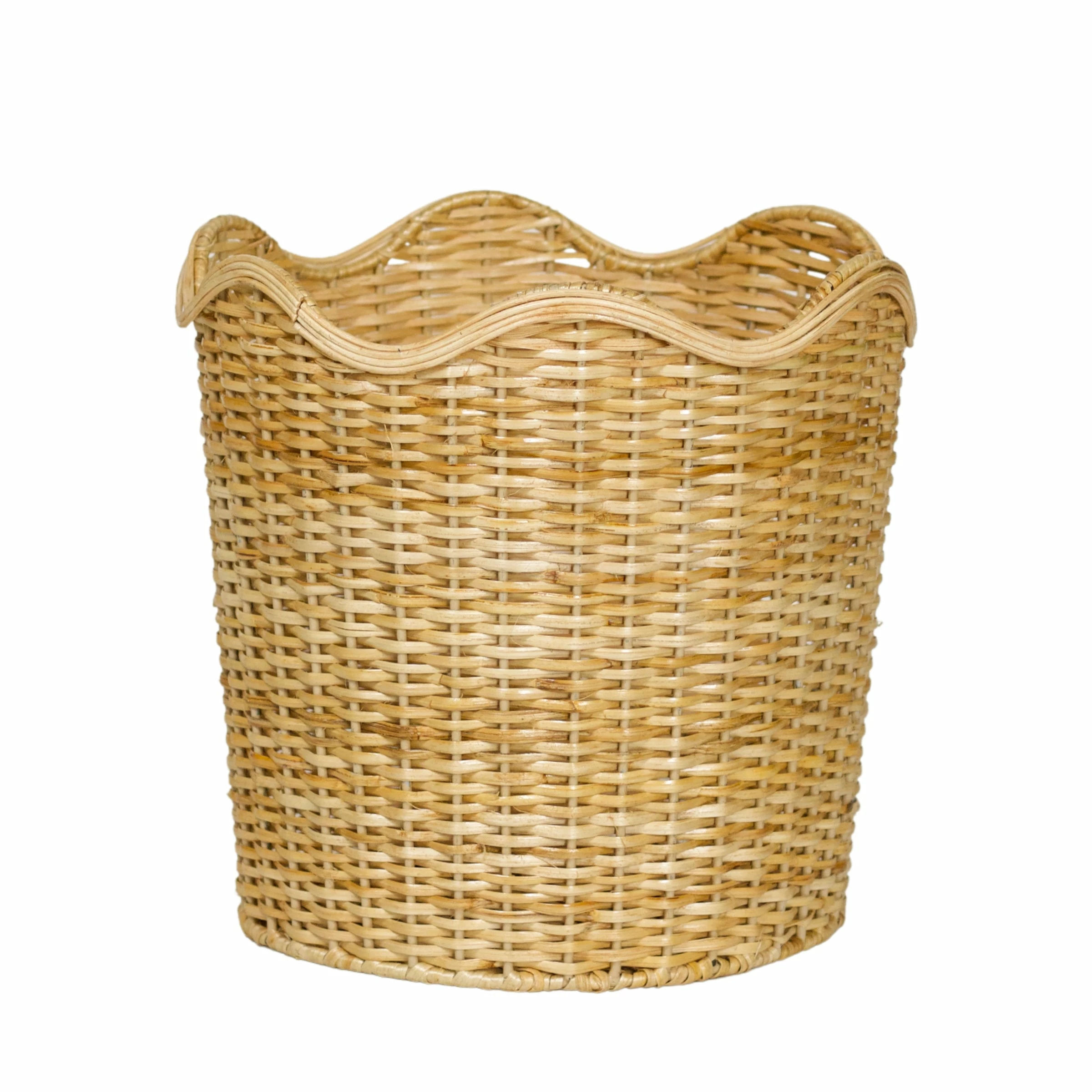 Rooms are all in the details, which means no object is too mundane to be special. This rattan waste bin will complement any space — a powder, office or mudroom, and the scalloped border elevates the design just enough.