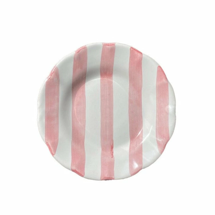 These European crafted designs are the perfect shade of rose to permit these plates to rotate through the seasons. This style of ceramic plate is typical of Southern Italy, and the decoration is applied to an imperfectly shaped plate for added interest to your teatime or supper scene.