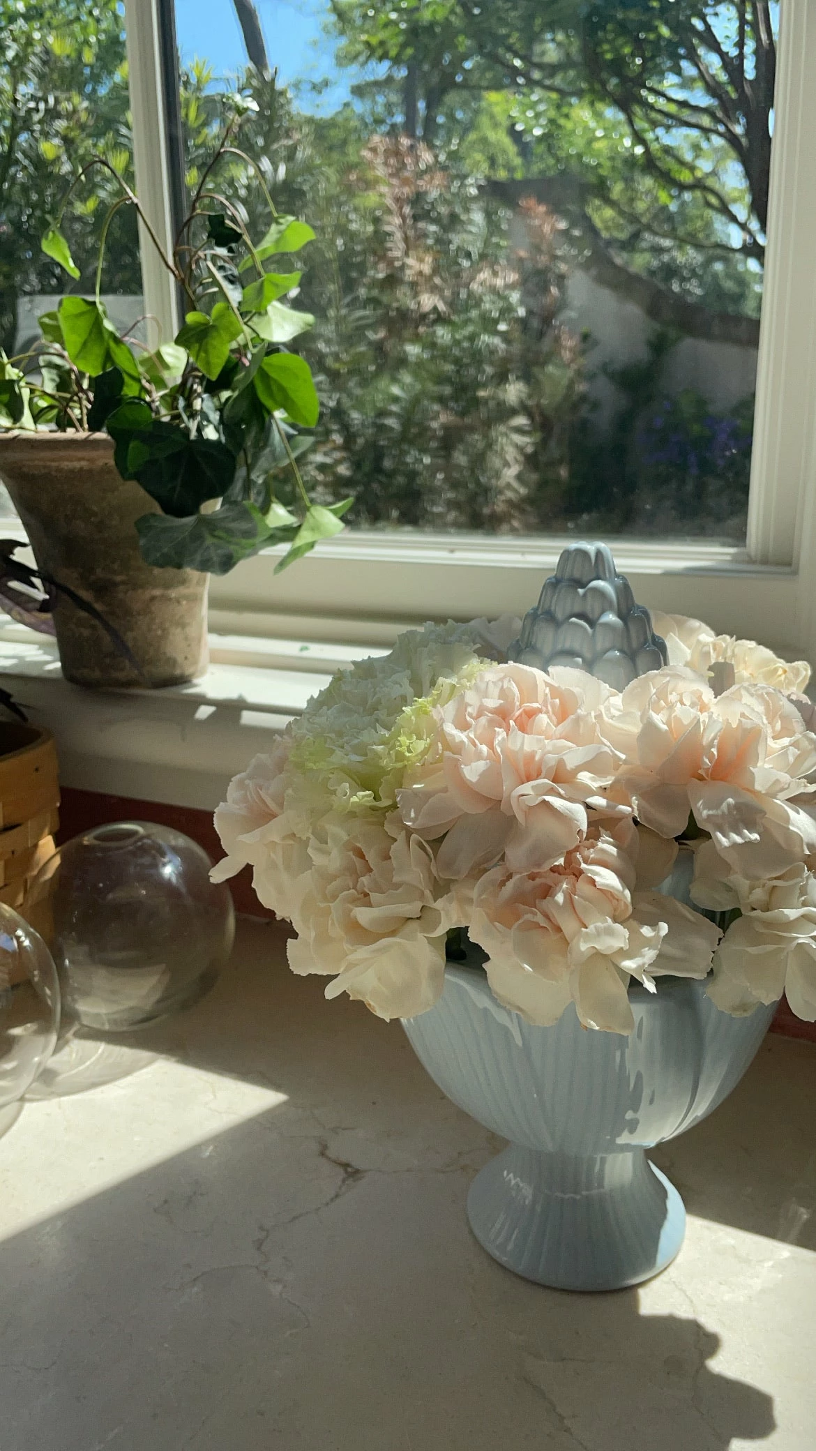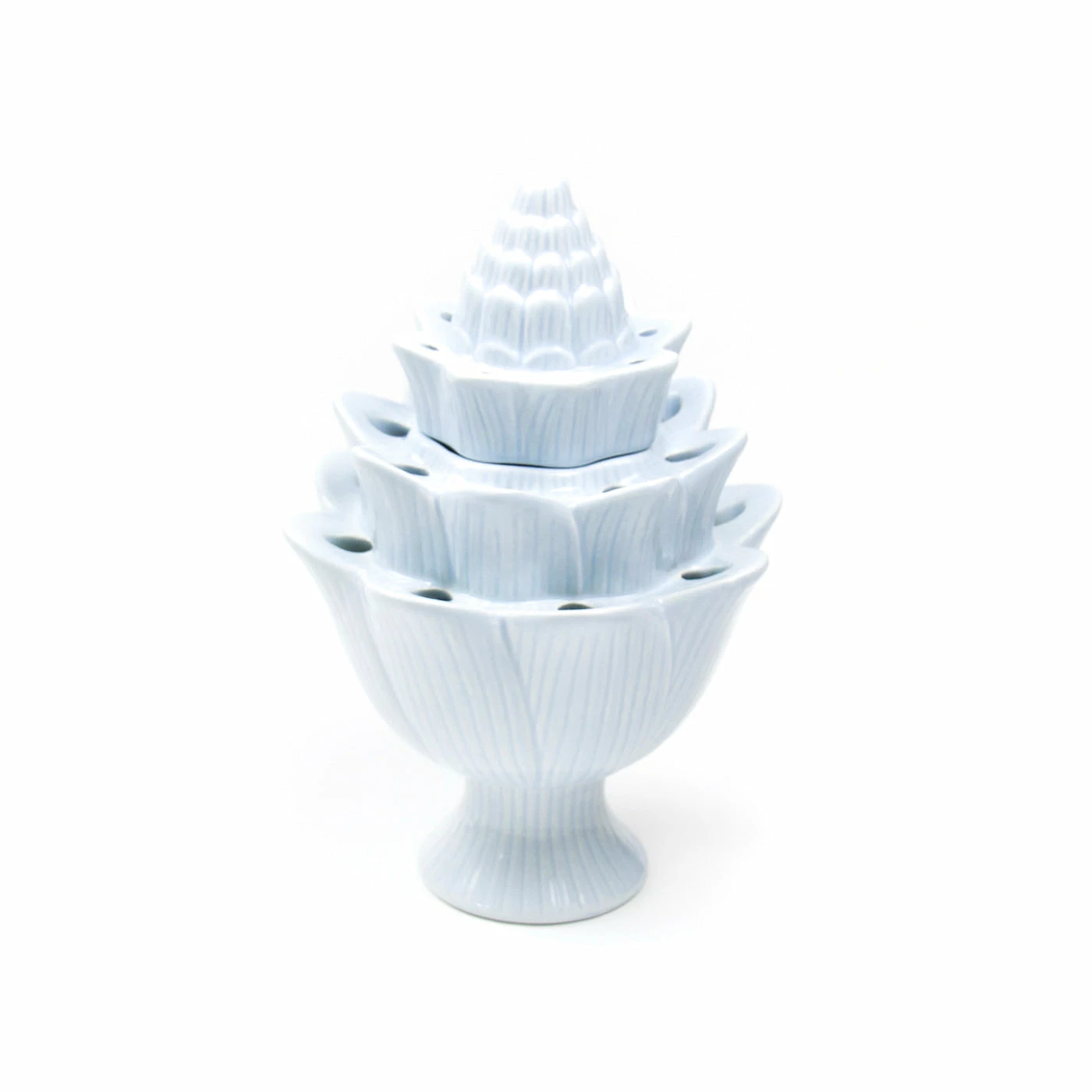 Tulipieres are self-arranging floral vessels. Dating to the early 17th century, tulipieres were designed to display the blooms of prized tulip bulbs. This pale blue tulipiere gives a classic look anywhere, any time of year!
