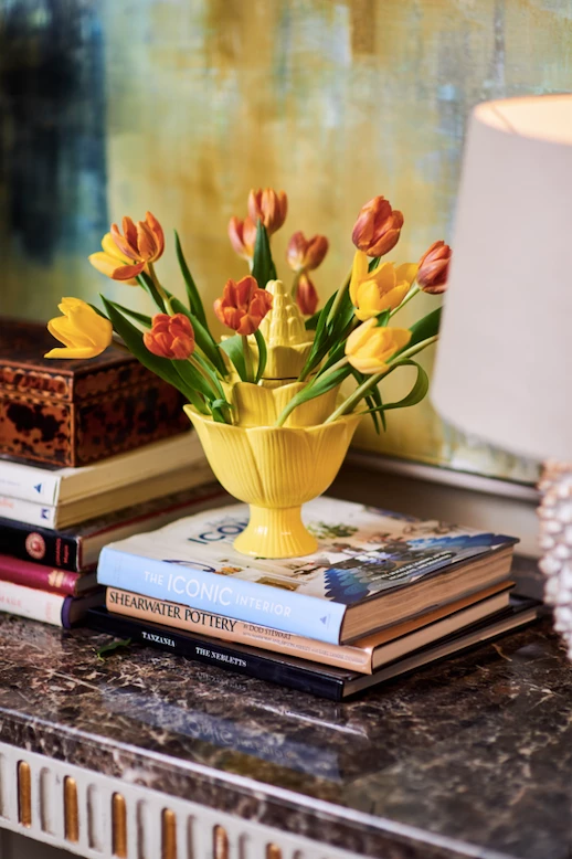 Tulipieres are self-arranging floral vessels. Dating to the early 17th century, tulipieres were designed to display the blooms of prized tulip bulbs. This bright yellow tulipiere gives a fresh, spring look anywhere, any time of year!