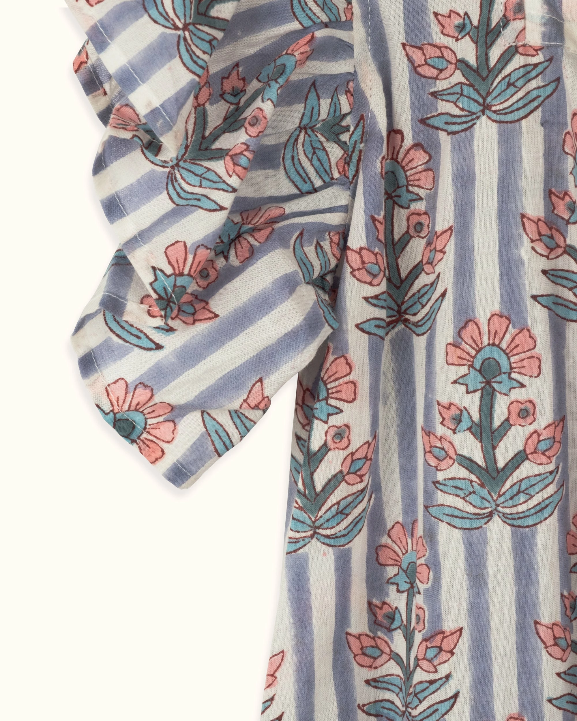 The Flora is the updated of their bestselling Fifi dress, with new beautiful block prints and features a stunning statement flutter sleeve. This is a piece that you will wear over and over again with its flattering suits-everyone square neck and subtle shirring across the back. It has a full skirt with a subtle single tier and as with all their dresses, pockets.
