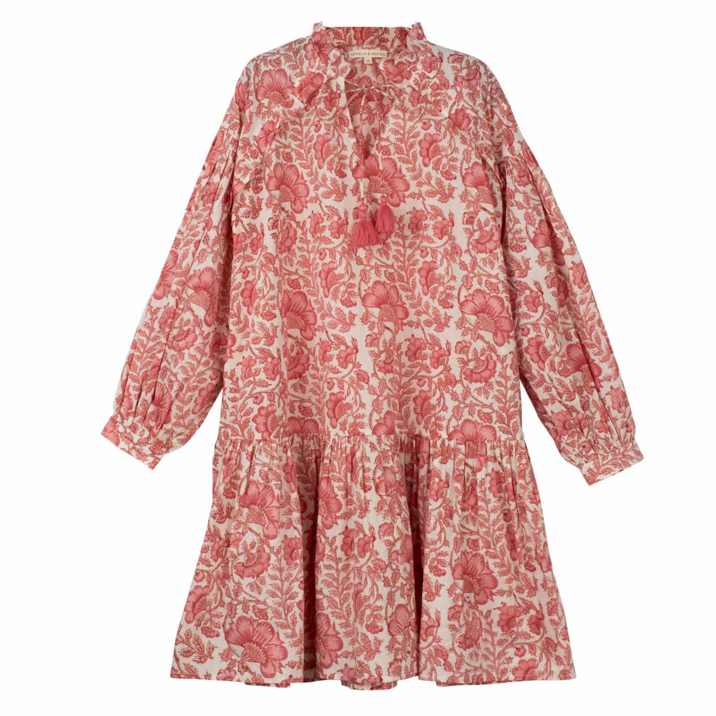 Meet Chloe. Chloe is the update of Kitty, their playful tunic mini-dress with balloon sleeves and pockets. It has the same flattering v-shaped neck, fabric tie tassels and full skirt but we have added frill detail across the shoulders and the sleeves. Now with a slightly longer length, it’s the perfect combination of comfort and style in one beautiful dress.