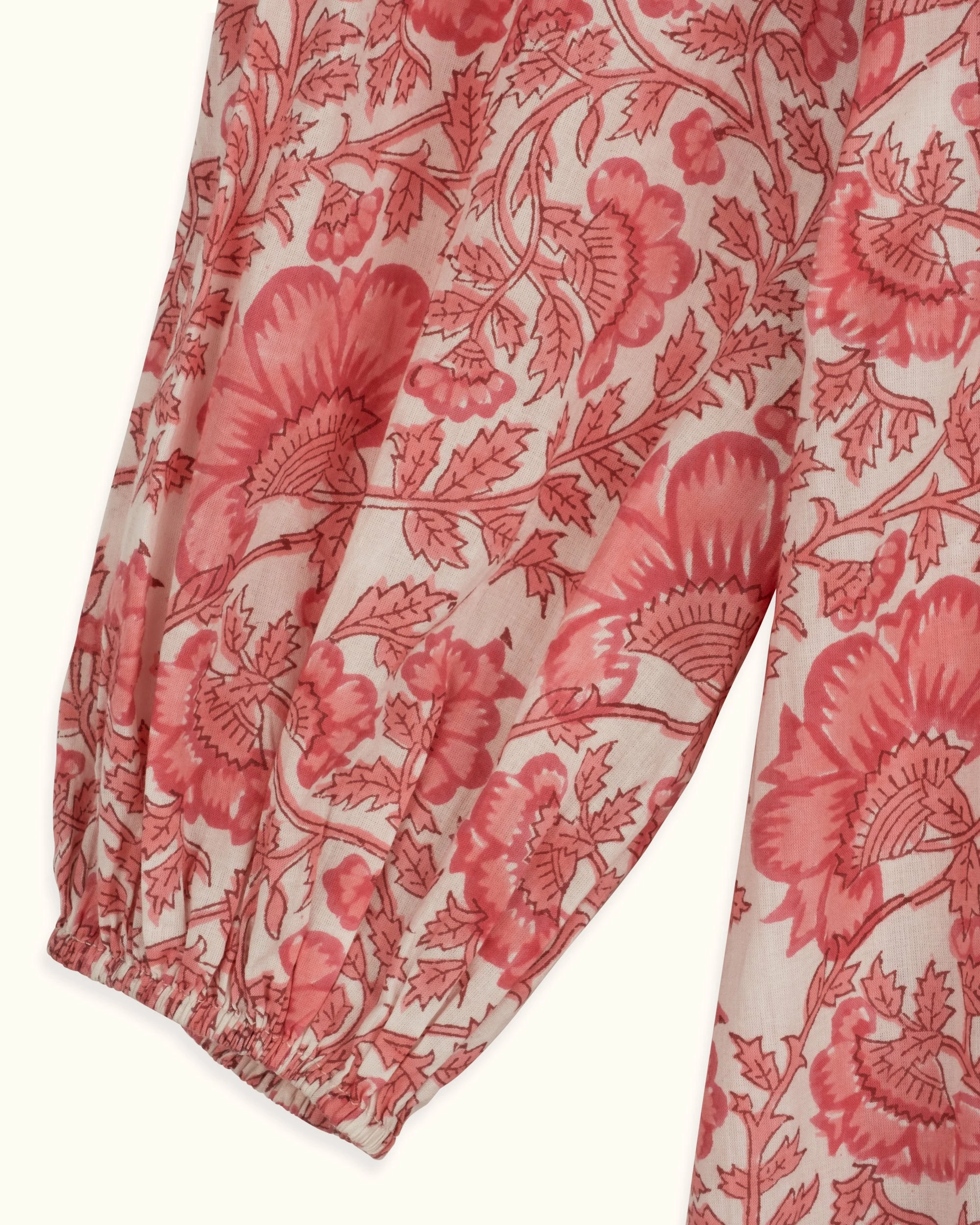 The Molly is the very essence of Ophelia & Indigo. It is slightly fitted in the body and has a shaped panel across the back in smaller scale floral print. A fabric covered button and tassels add additional pretty details to the neckline and front.The sleeves are relaxed and elasticated. Push them up, tuck the elastic under and puff them out to create a bit of drama!