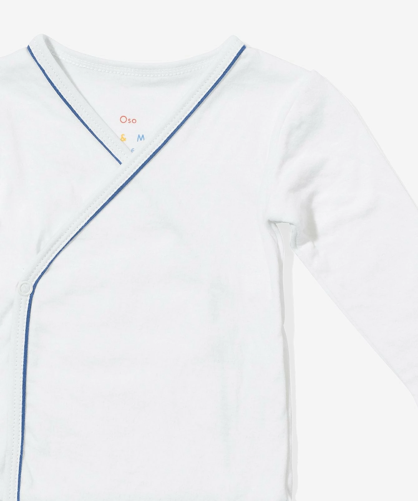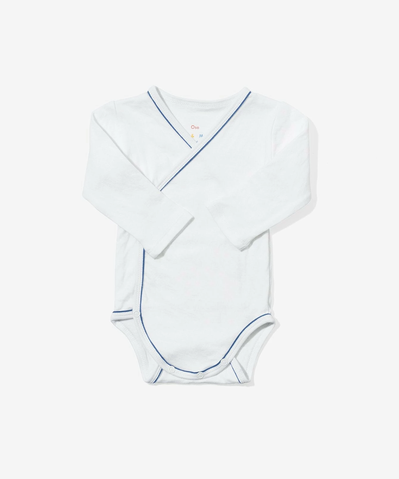 Our crossbody onesies make dressing your newborn a synch! And our elastic piping makes this one stand out, making you and your baby look put together even when you aren’t. Better yet our soft double weight organic cotton jersey layers perfectly for those cooler months and on its own for an easy top.
