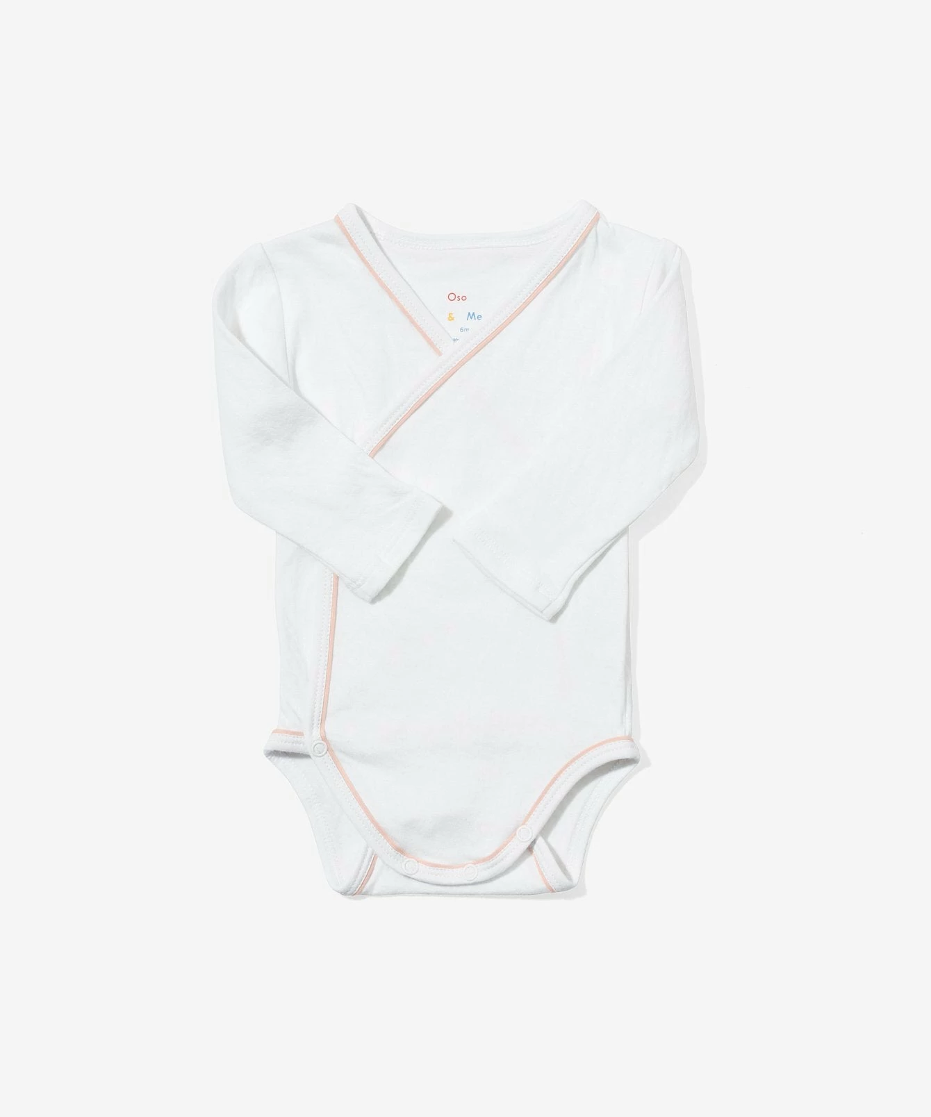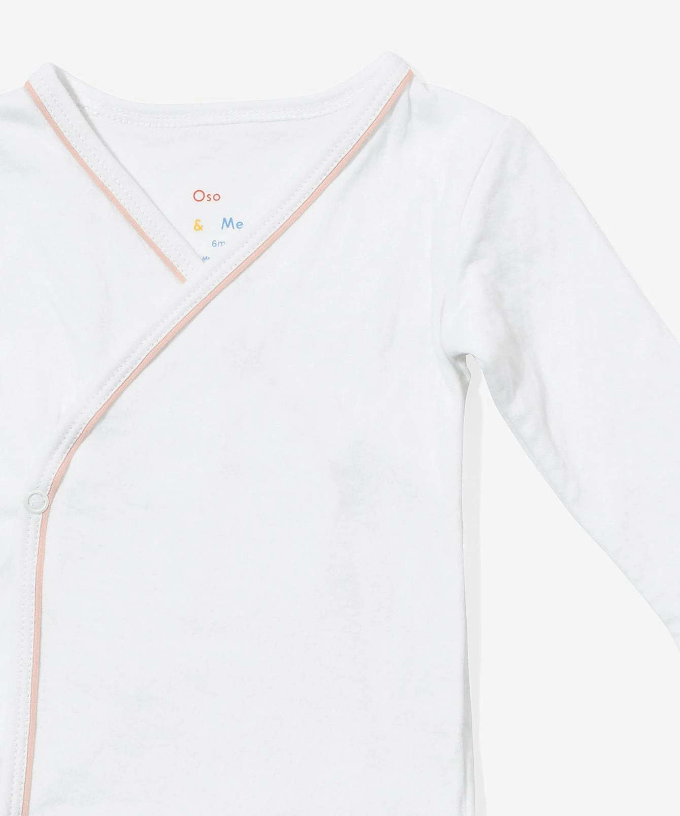 Our crossbody onesies make dressing your newborn a synch! And our elastic piping makes this one stand out, making you and your baby look put together even when you aren’t. Better yet our soft double weight organic cotton jersey layers perfectly for those cooler months and on its own for an easy top.