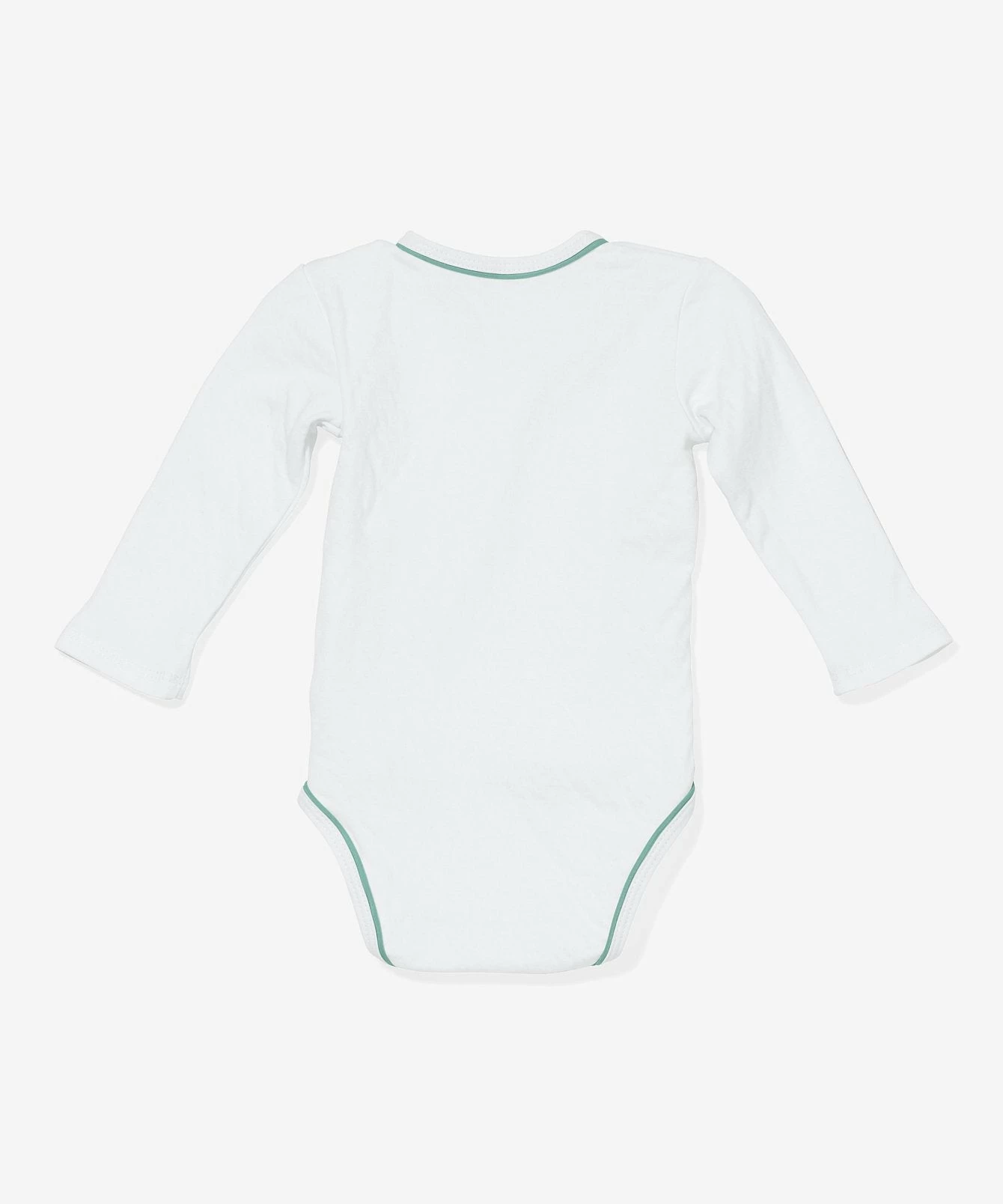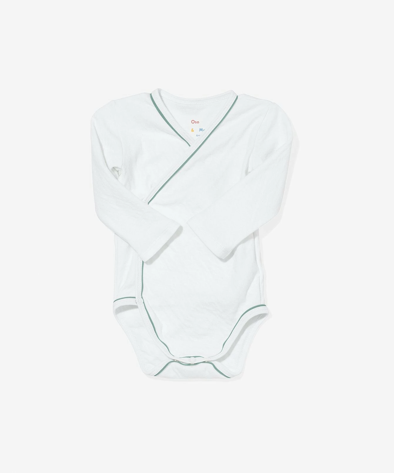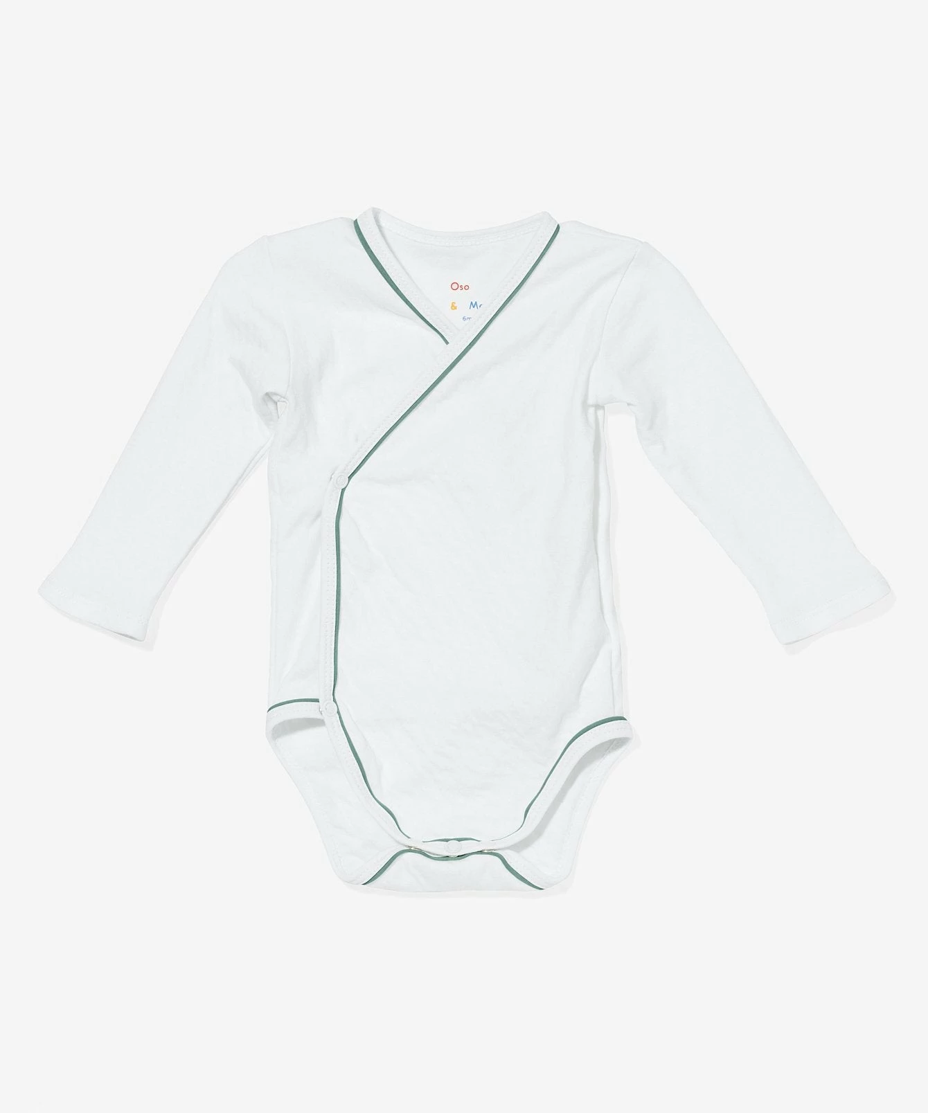 Our crossbody onesies make dressing your newborn a synch! And our elastic piping makes this one stand out, making you and your baby look put together even when you aren’t. Better yet our soft double weight organic cotton jersey layers perfectly for those cooler months and on its own for an easy top.
