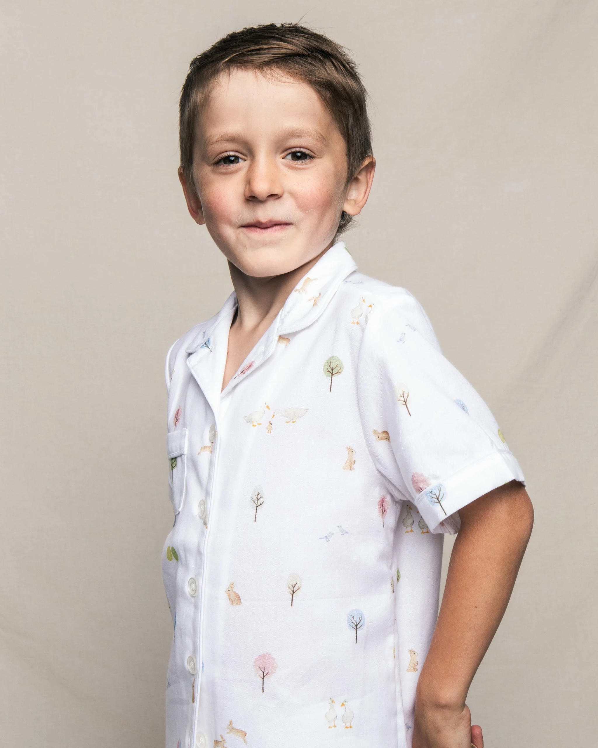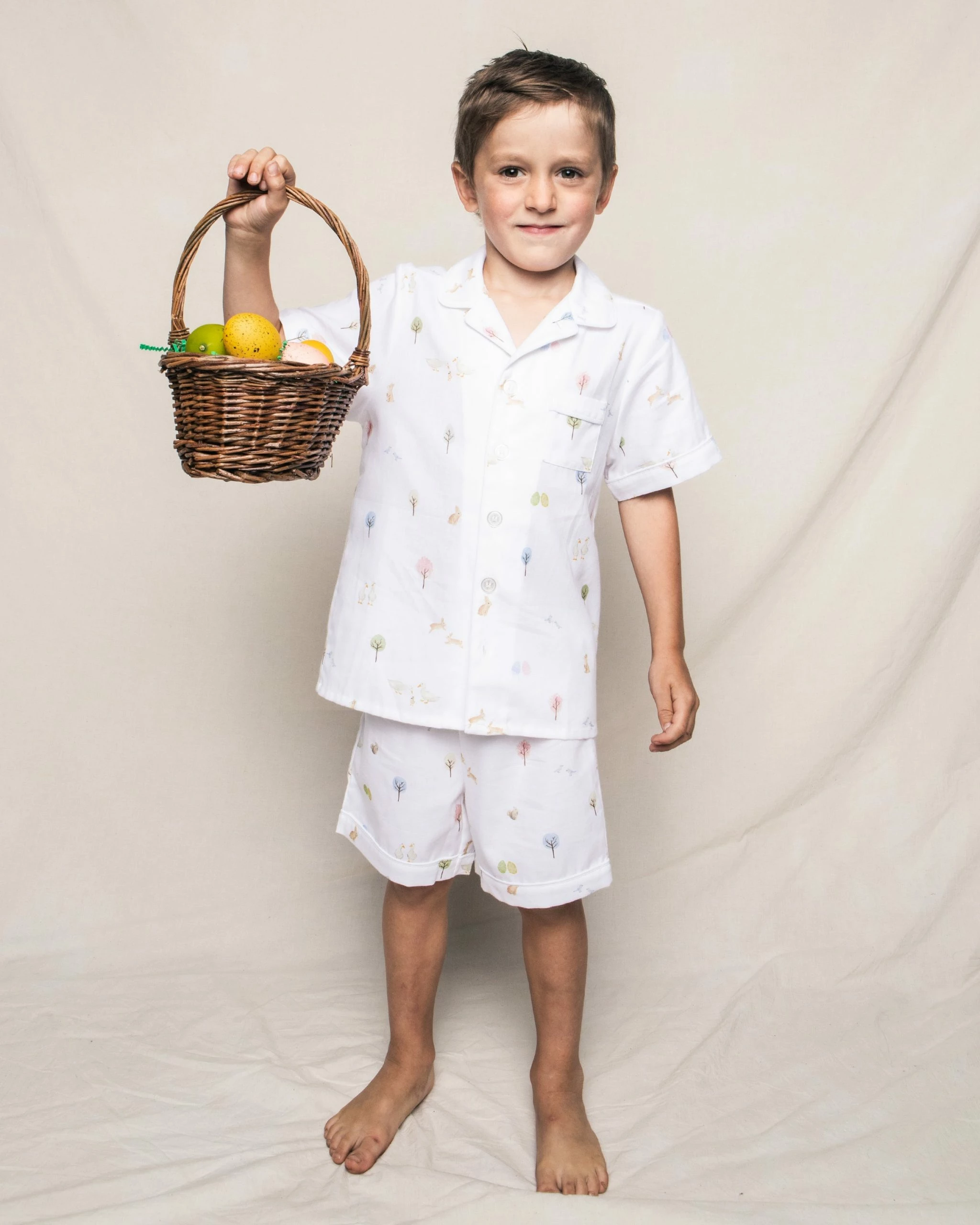With a nod to Beatrix Potter’s English country charm, their Easter Gardens print features leaping bunnies, fluffy-tailed squirrels, fowl near blooming arbors, and painted eggs that suggest the magic inherent in spring.