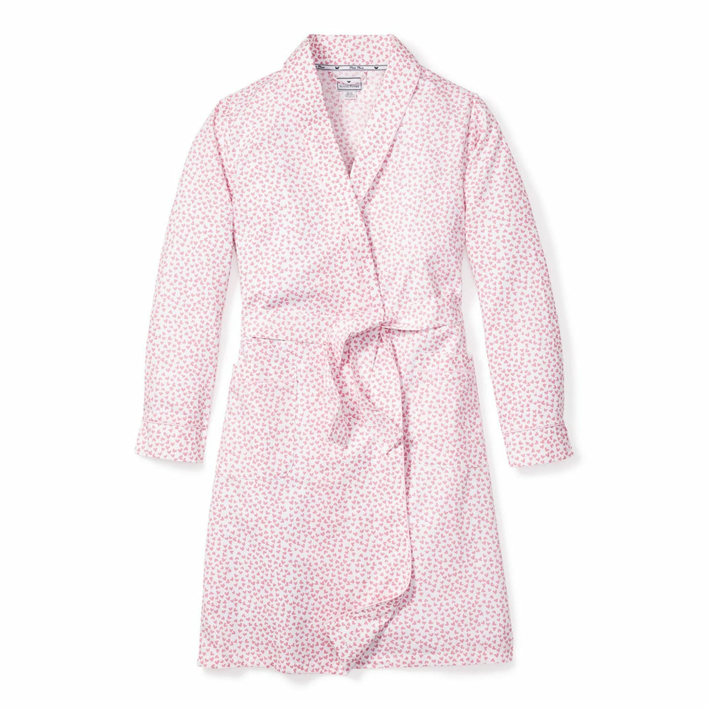 Like joyful confetti, the little pink hearts dance across the fabric as if batting their eyelashes. This elegant robe is the perfect addition to our collection. The classic, delicate pattern is a staple and will have you looking smart in no time.