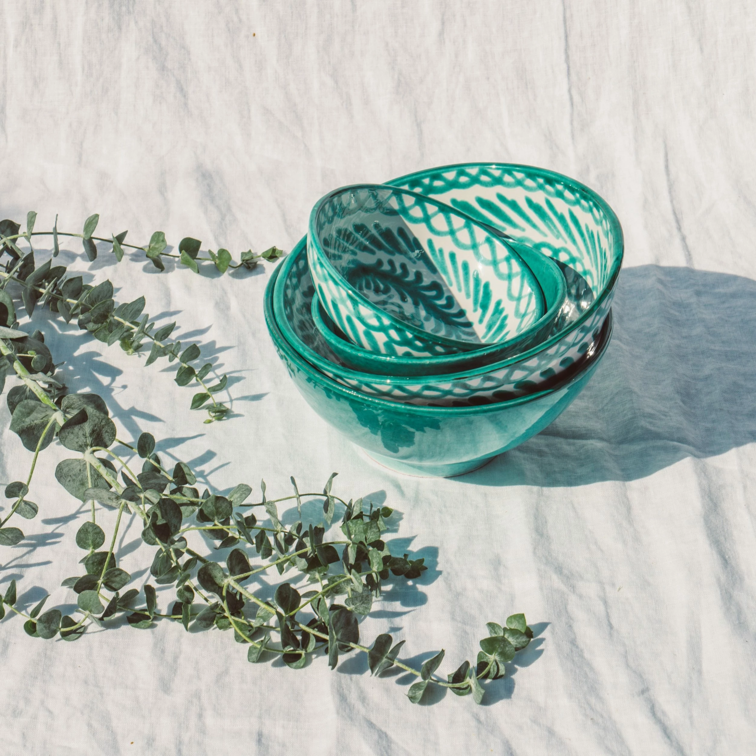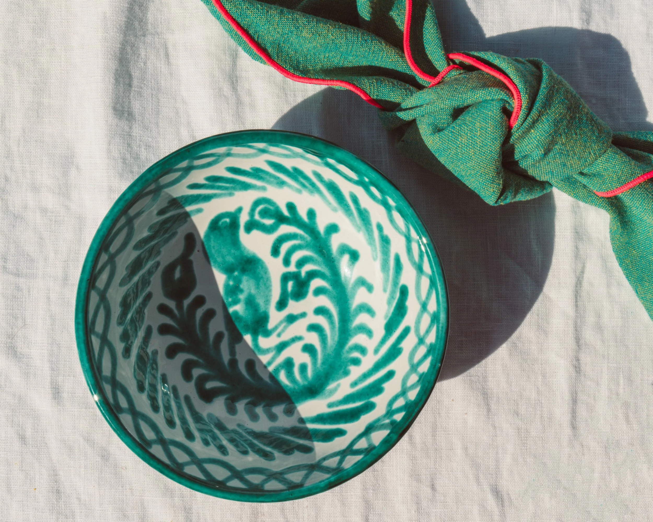 Small bowl in Granada green, perfect for granola with fruit and yogurt in the mornings or olives and nuts in the evenings with friends
