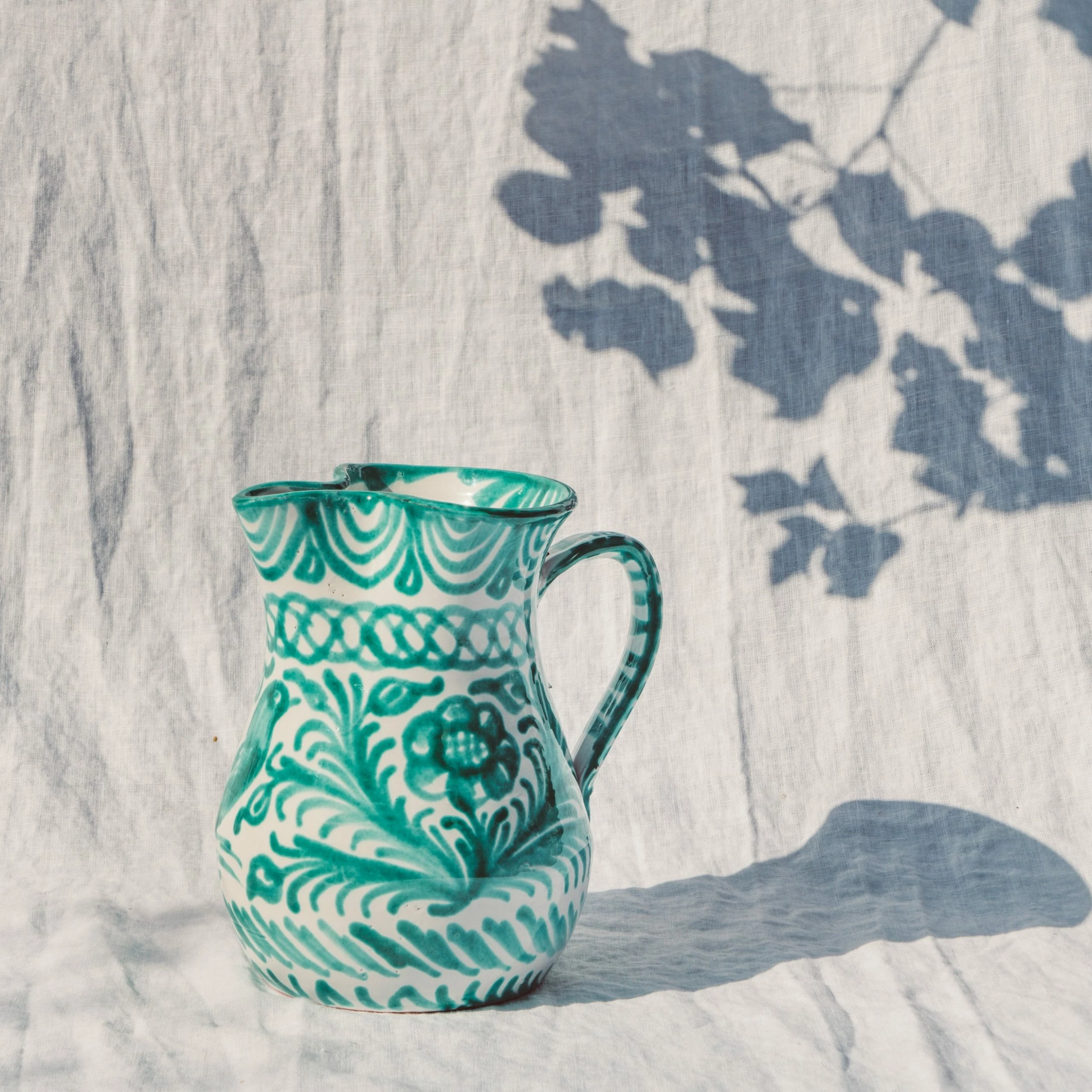 When it comes to effortless, alfresco dining, we have no reason to not trust Europeans. They have the wine with a leisurely lunch situation down pat, and we’re trying to get on their laissez faire schedule as much as possible this summer. A few tabletop essentials will help encourage such behavior, like these hand-painted pitchers seeping with personality. Made in Southern Spain and inspired by century-old techniques, the signature pattern in punchy colors is a happy addition to any table and a perfect gift for a hostess. We’re putting everything inside from fresh stems to lemonade and gazpacho.