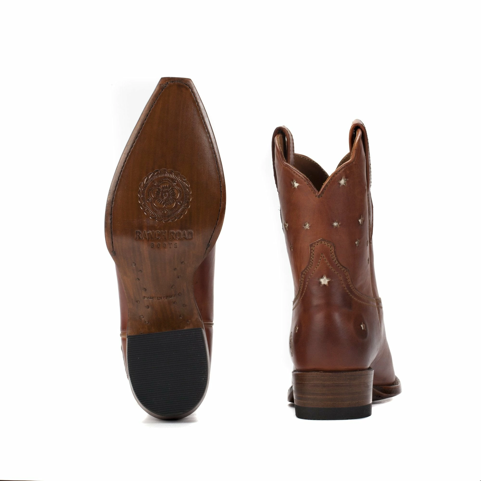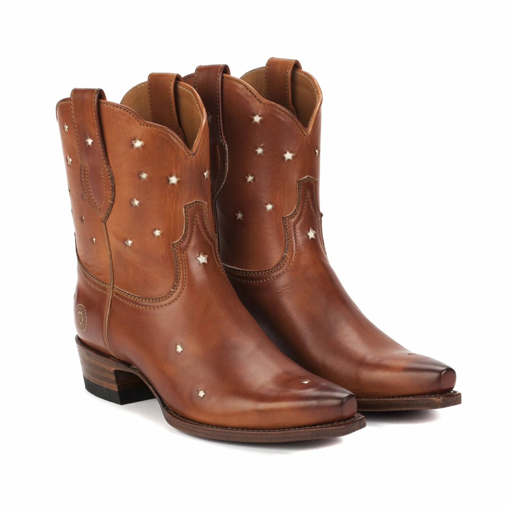 The Presidio Short is a classic western bootie handcrafted with traditional western lasts (molds) using vegetable-tanned Spanish leather. This style dots an all-over pattern of tiny cut-out stars for a fun starry twist. Pair them with classic jeans, a dress or skirt and look effortlessly stylish.