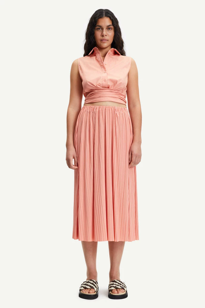 We love Samsoe & Samsoe for their commitment to being sustainable and being Oeko-tex certified. This means the materials and textiles they use are completely free from harmful chemicals. So you know when you are wearing this long pleated skirt you are chic with an ethically sourced label.