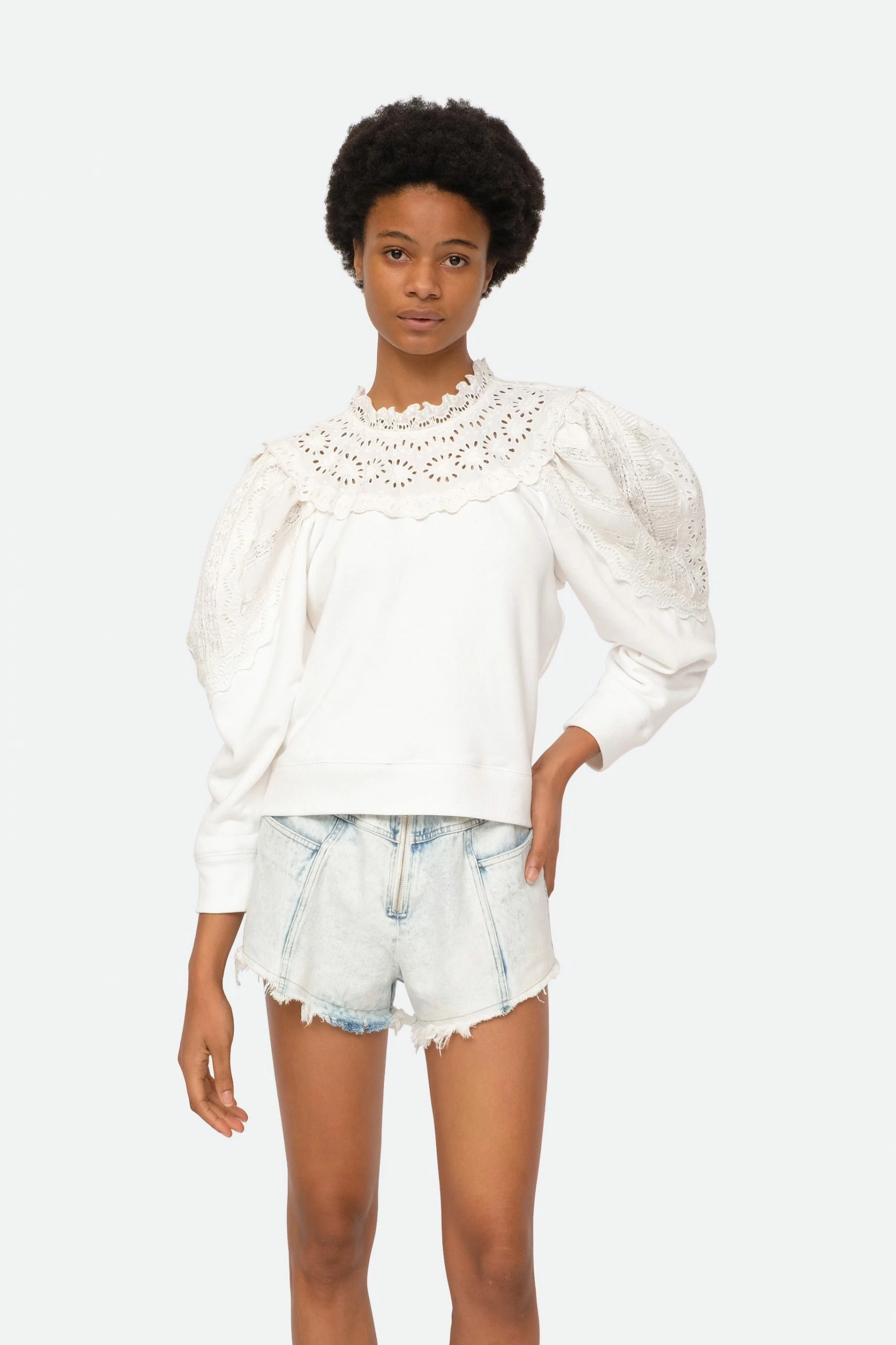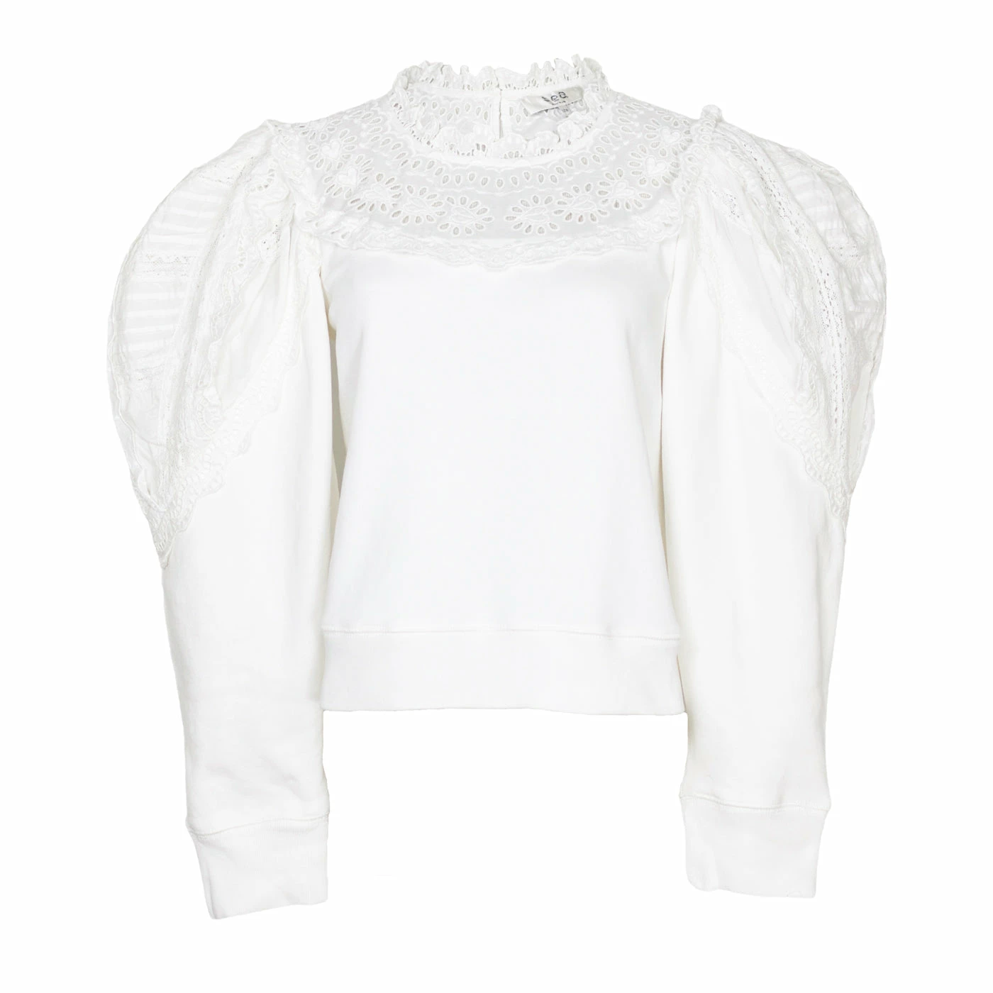 As soon as we came across Sea NY, we knew it was a brand we needed on The Avenue. We’re obsessed with their unique vintage-feeling designs, that are the sort of staples LZ strives to collect in her own personal closet. The Georgina sweatshirt in white features lightweight eyelet fabric around the neck and shoulders.