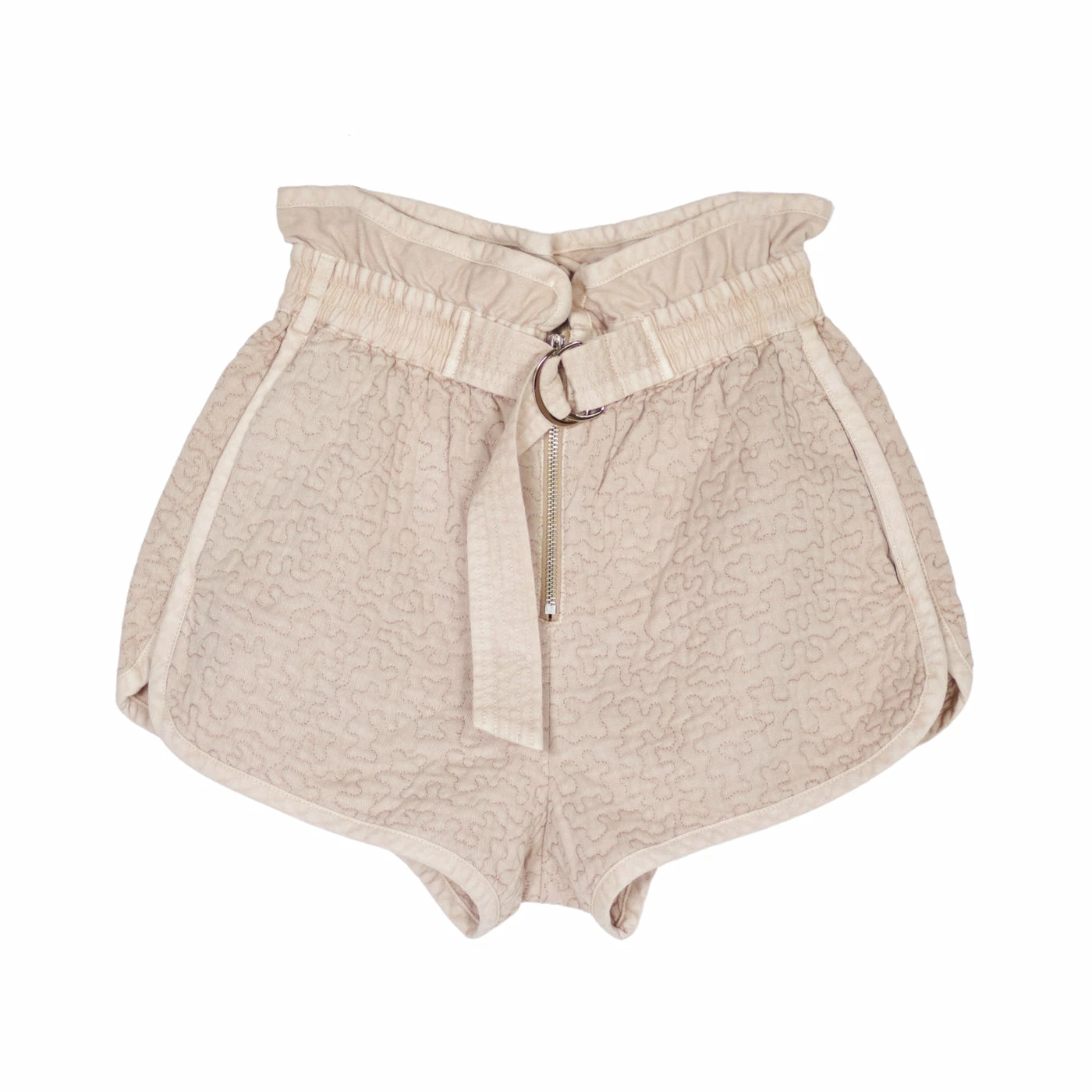 The Stan sandwash quilt shorts feature a high-rise paperbag silhouette with self tie belt and elasticized back detailing.