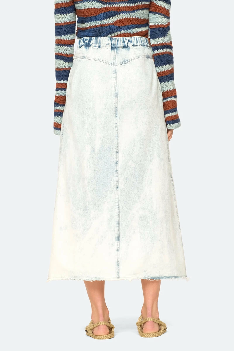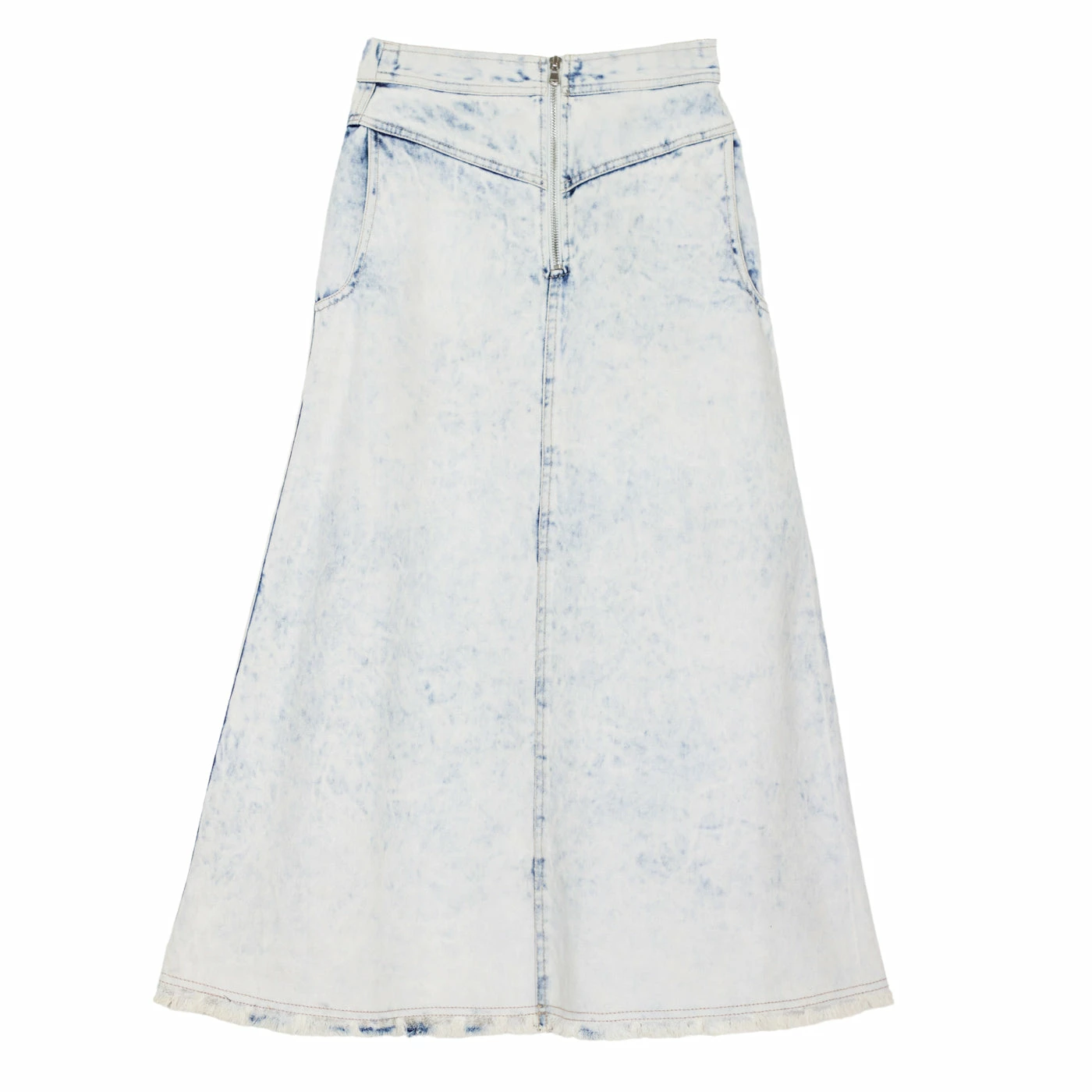 As soon as we came across Sea NY, we knew it was a brand we needed on The Avenue. We’re obsessed with their unique vintage-feeling designs, that are the sort of staples LZ strives to collect in her own personal closet. The Birdie bleached denim skirt features an exposed front zipper and frayed hem detailing. Please note when it comes to hand washed garments, color variation is a normal part of the process. No two are exactly alike.