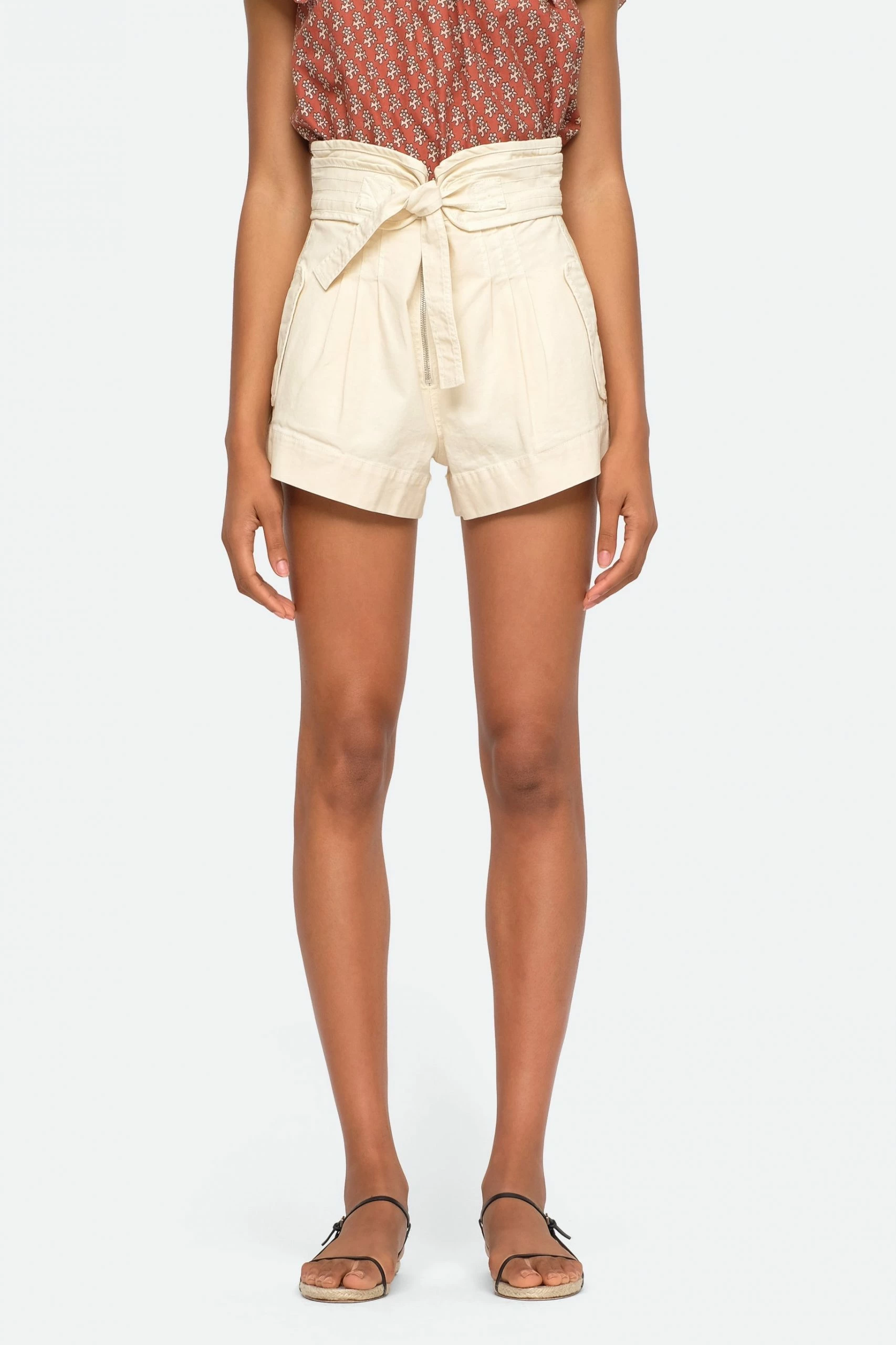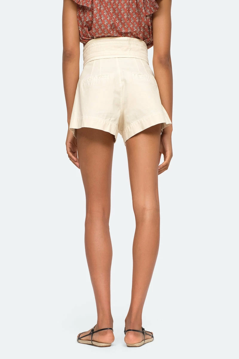 The Suri belted shorts feature a flattering high-waisted silhouette with self tie belt.