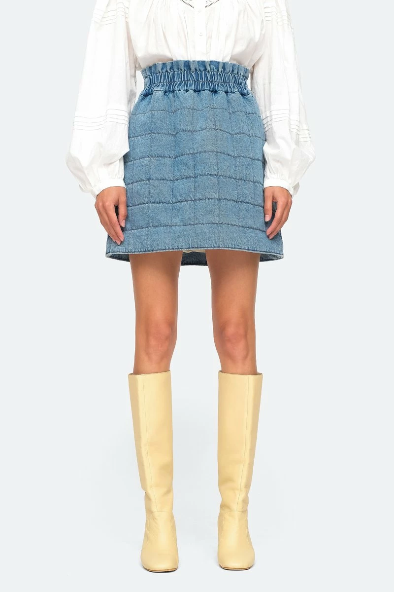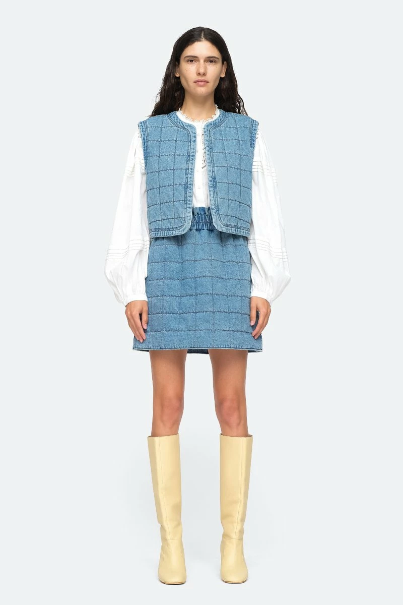 As soon as we came across Sea NY, we knew it was a brand we needed on The Avenue. We’re obsessed with their unique vintage-feeling designs, that are the sort of staples LZ strives to collect in her own personal closet. The Vida quilted denim mini skirt features a high rise silhouette, elasticized waist and quilted detailing.