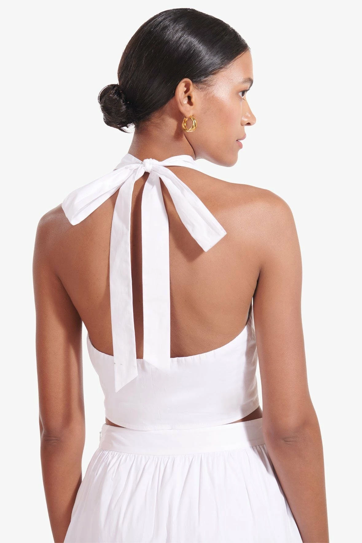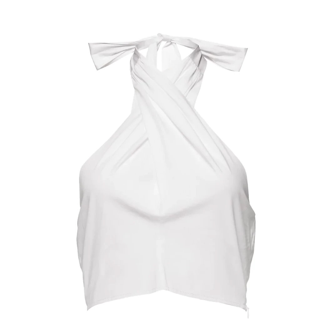 The Kai Top is a cropped fitted halter top made out of cotton poplin.