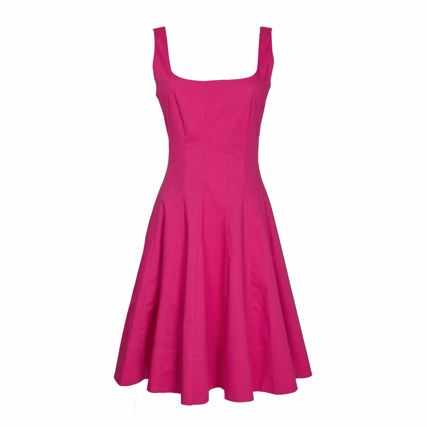The Mini Wells Dress features a corset-style panel construction to create a flattering, fitted shape through the waist and a mini-length a-line skirt.