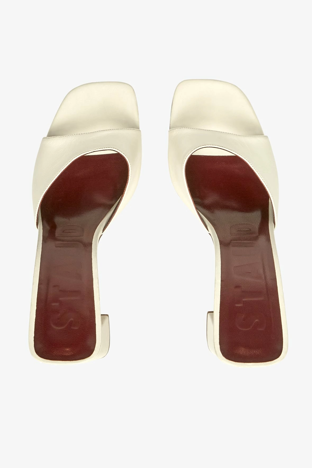The Sloane Heel is an open toe leather sandal with chunky heel and square toe.