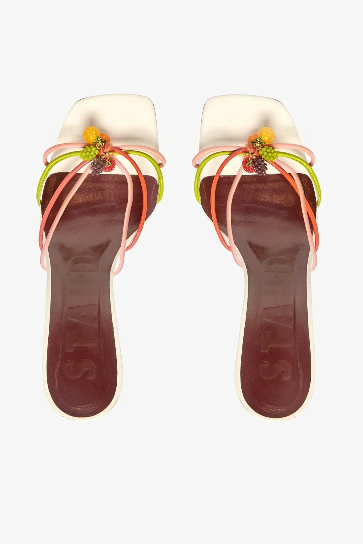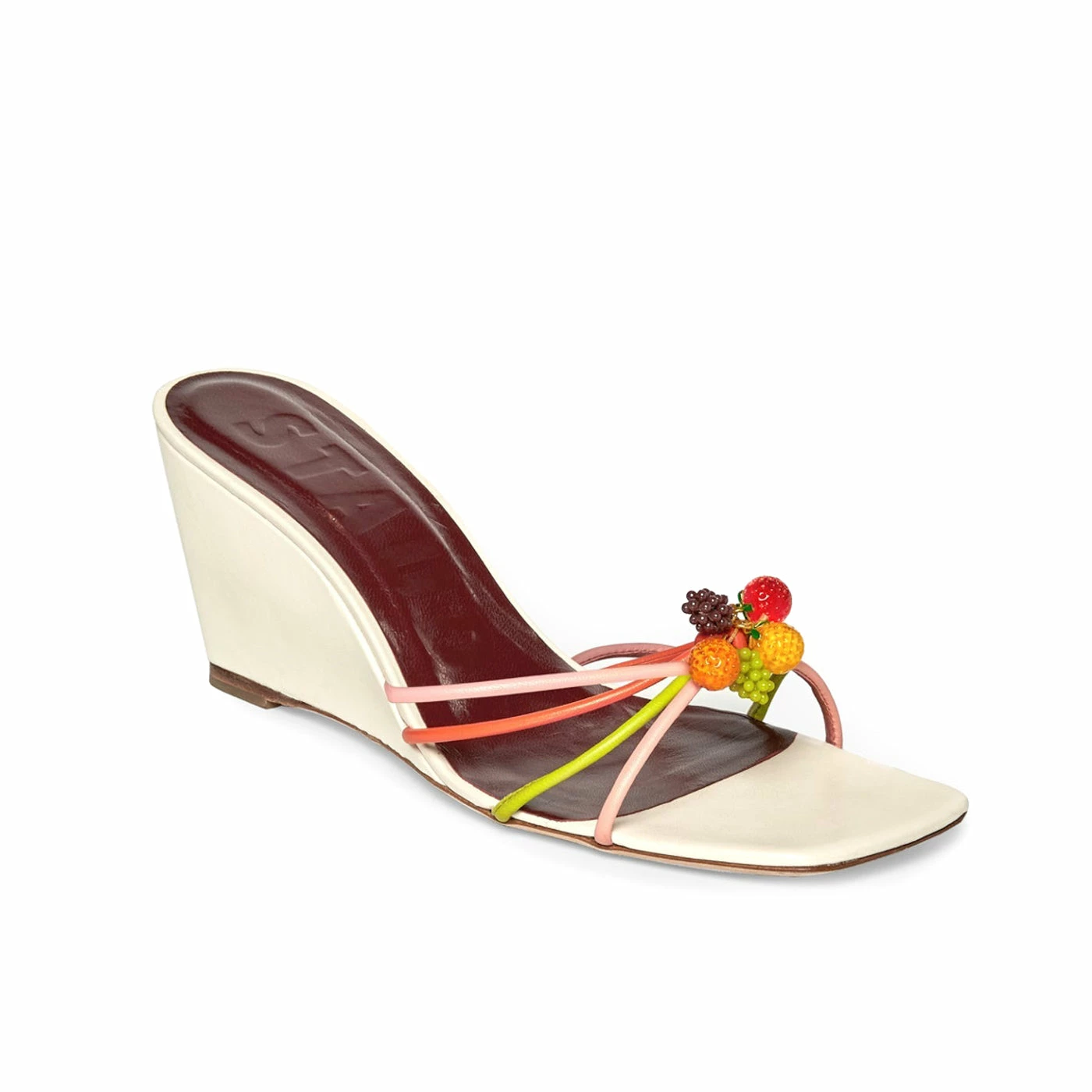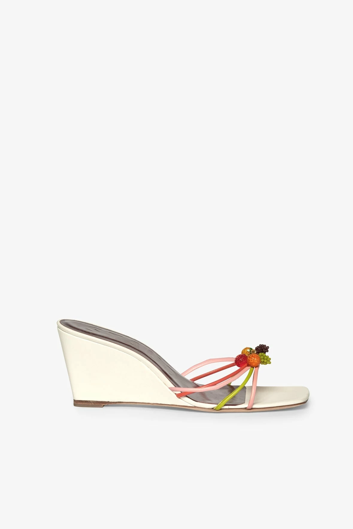 A nappa leather wedge sandal, the Pippa features three knotted straps at the front and multi-colored fruit detail.