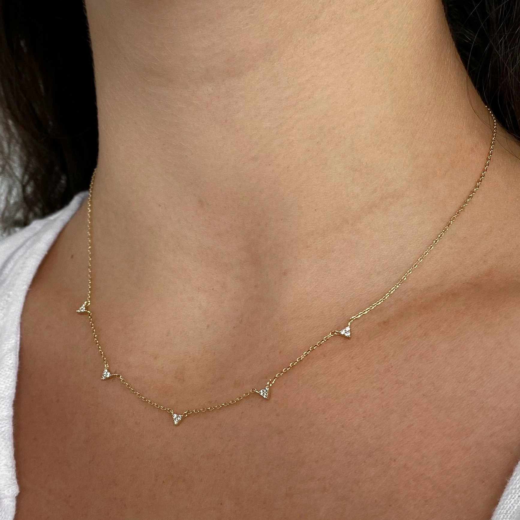 - 14k gold or rhodium plated small cubic zirconia cluster necklace.