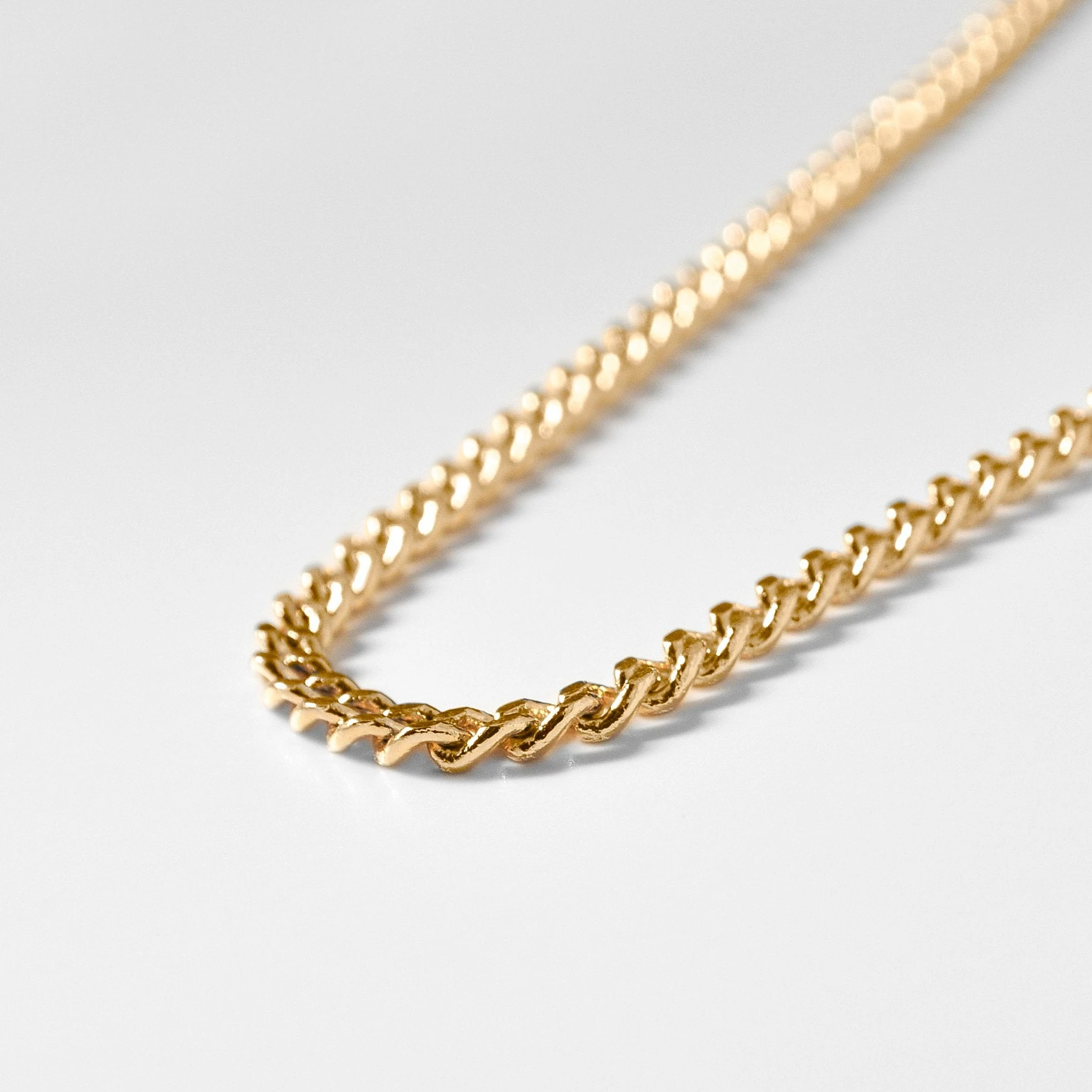 - 14k gold or rhodium plated dainty curb chain. Available in 4 lengths: