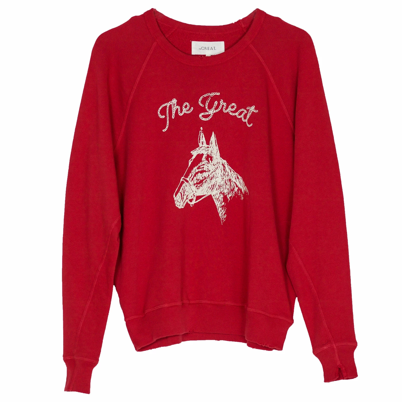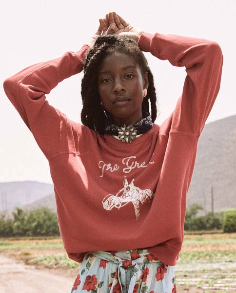 Reminiscent of printed graphics found on well-worn vintage tees, this stallion graphic sweatshirt is cut from double-washed terry, featuring a perfectly faded wash and signature slit on the left cuff. For an authentic finish, each graphic is applied with a treatment that crackles and ages with love and wear.