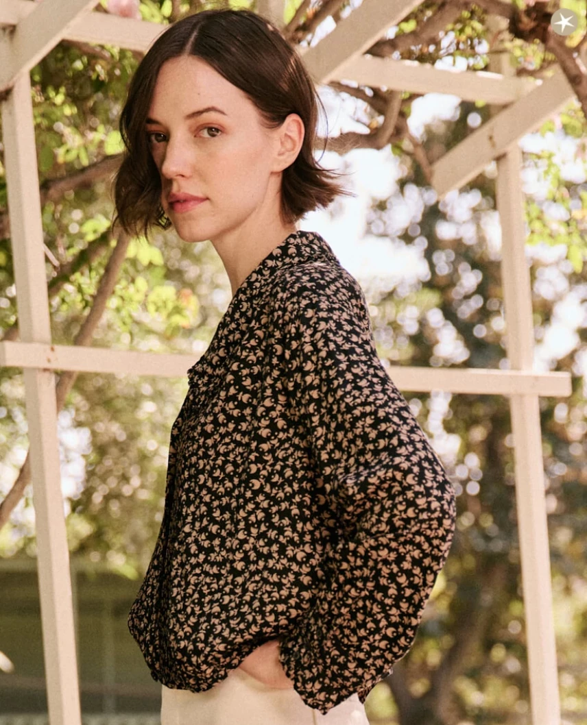 Cut from a dressy viscose that hangs beautifully, The Finch Top has a weighty and silky hand with a soft drape and sway. Cut to be boxy, swingy and cropped, this beautiful blouse is designed after an ultra-feminine dress shirt from the 1930’s. It features an open neckline with a dramatic collar with a dainty ruffle edge, fine pintucks down its front and cuffs, and a delicate, self-ribboned trim.