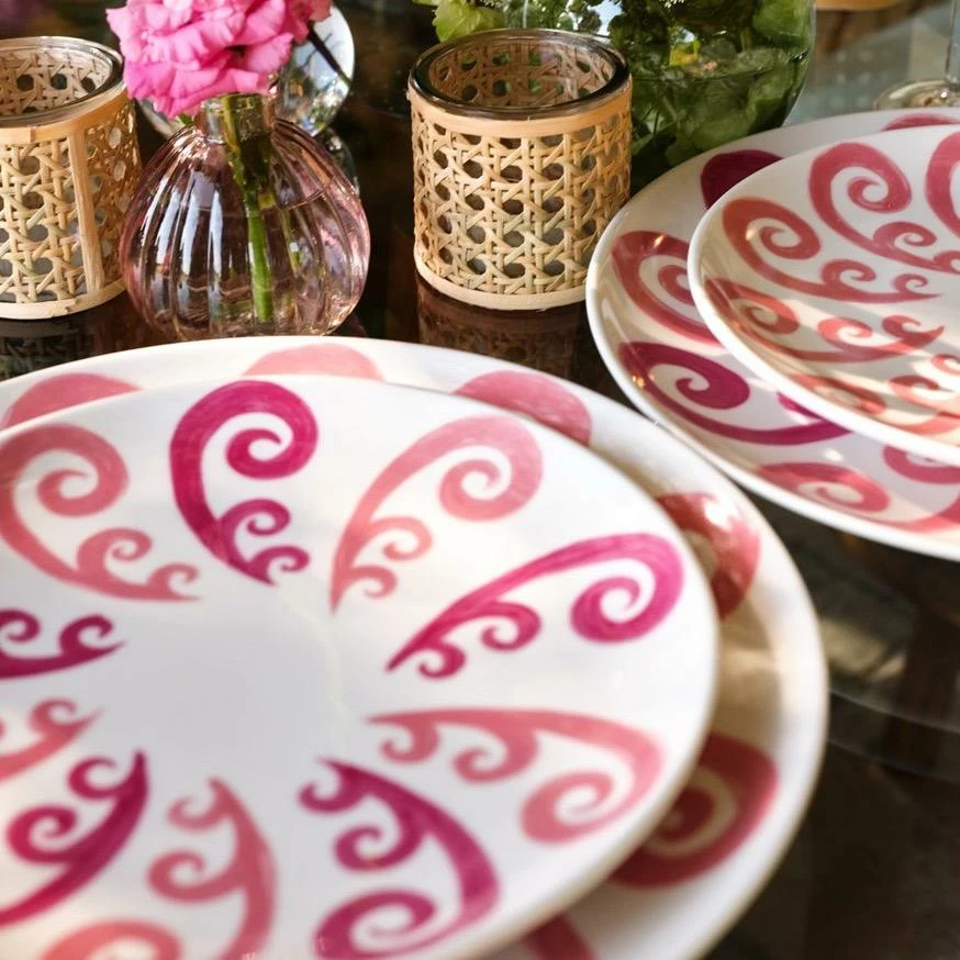 Handcrafted in fine porcelain adorned with hand-painted Peacock pattern in two-tone pink.