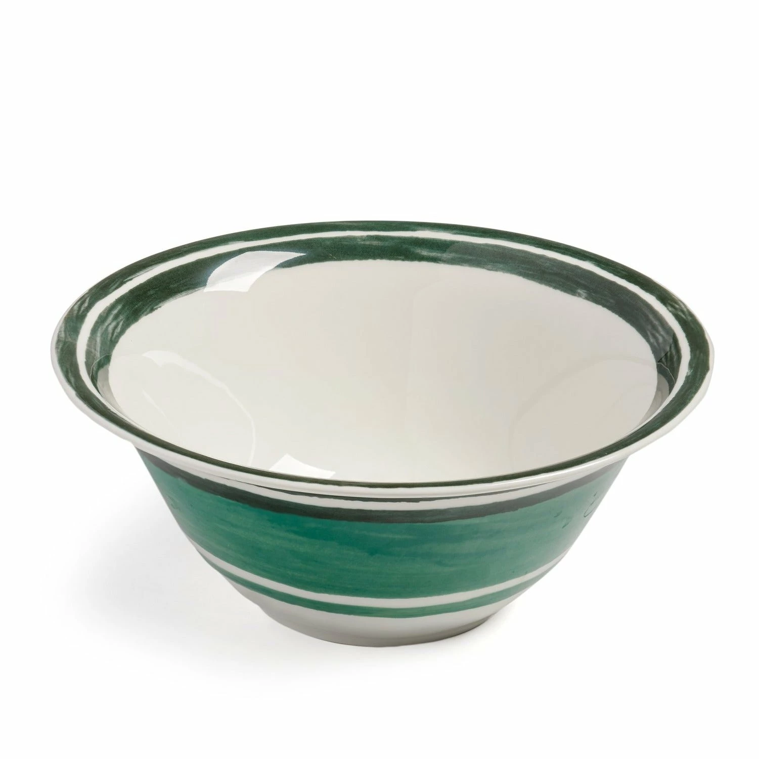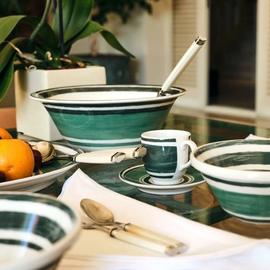 Handcrafted bowl in fine porcelain adorned with hand-painted Maze pattern in green.