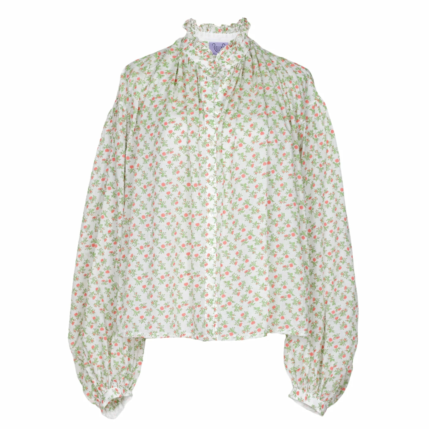 The Slava Blouse features wide bell sleeves and simple collar band. Perfectly flowy and light for the summer months.