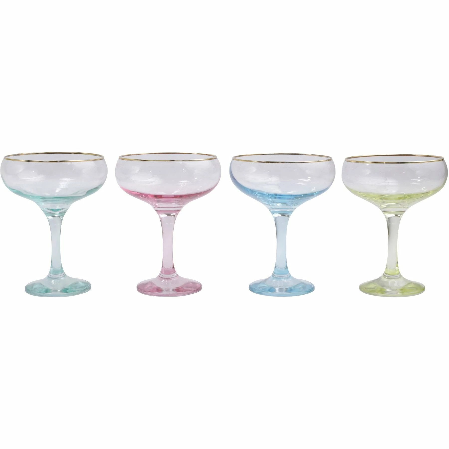 Add sparkle to any setting with a gilded gold rim and varied colored glass that refracts light on the Rainbow Coupe Champagne Glass.