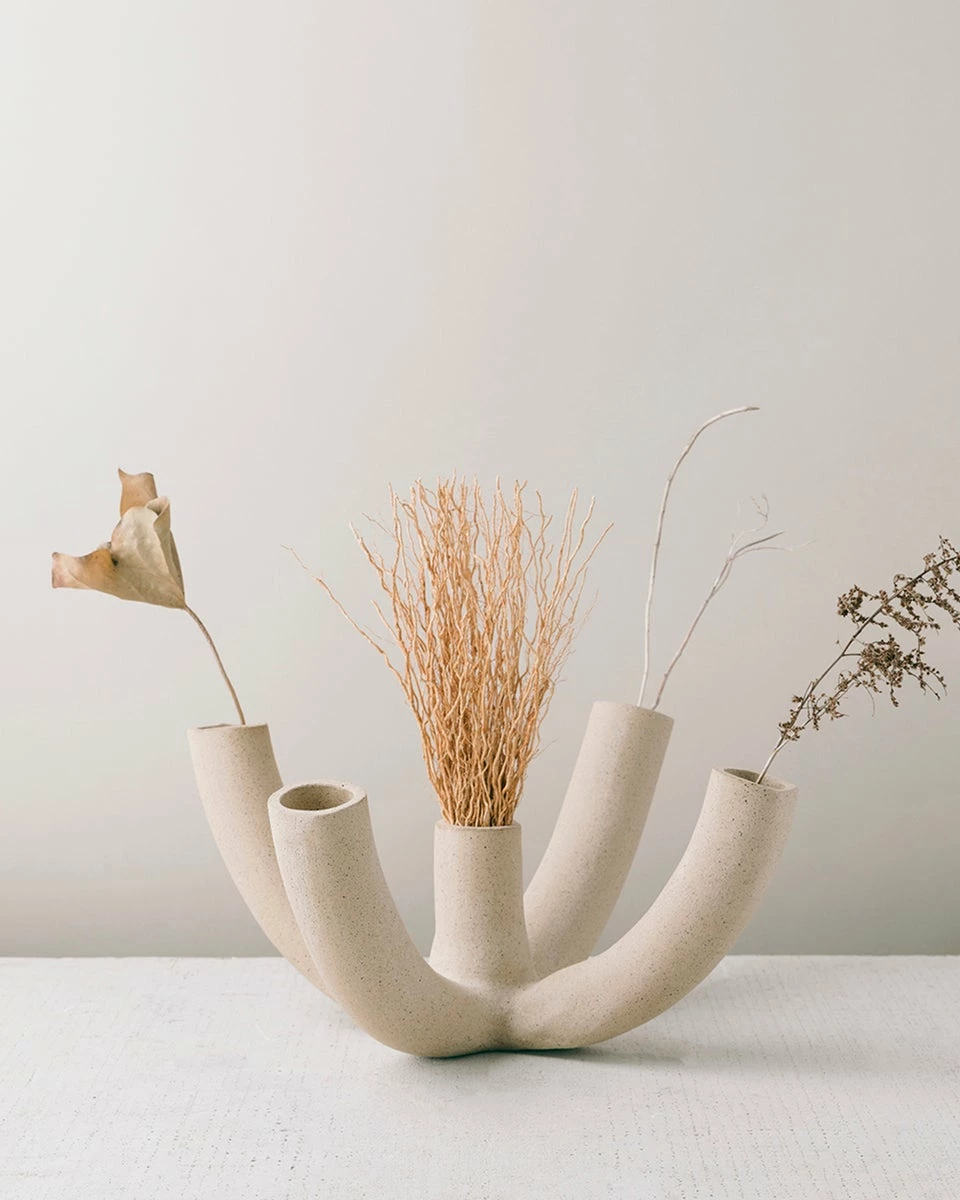 Give your fresh blooms, vines or anything you deem worthy of display an updated abode with this vessel. Deep burgundy buds would pop against the earth tones of this vase. It also looks just as well sans anything inside as a sculptural piece for your coffee table, bookshelf or entry console.